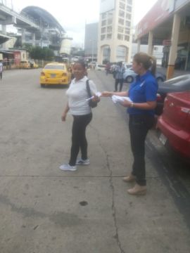 En el Distrito de San Miguelito fueron distribuidas volantes en el Centro Comercial Los Andes y La Gran Estación; mientras que en la ciudad capital se distribuyeron materiales informativos en el semáforo adyacente a la Sección de Familia ubicada en el Edificio Lux en Calidonia, Plaza 5 de mayo y La Peatonal con el fin de hacer un llamado a la población para que tomen conciencia y denuncien los hechos de violencia doméstica.