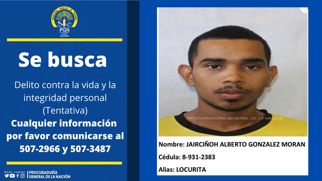 Se requiere ubicar al ciudadano Jairciñoh Alberto González Morán alias “Locurita”, con posible residencia en el corregimiento de El Chorrillo y a César Junior Torres Alvarado, con posible residencia en Plaza Amador.