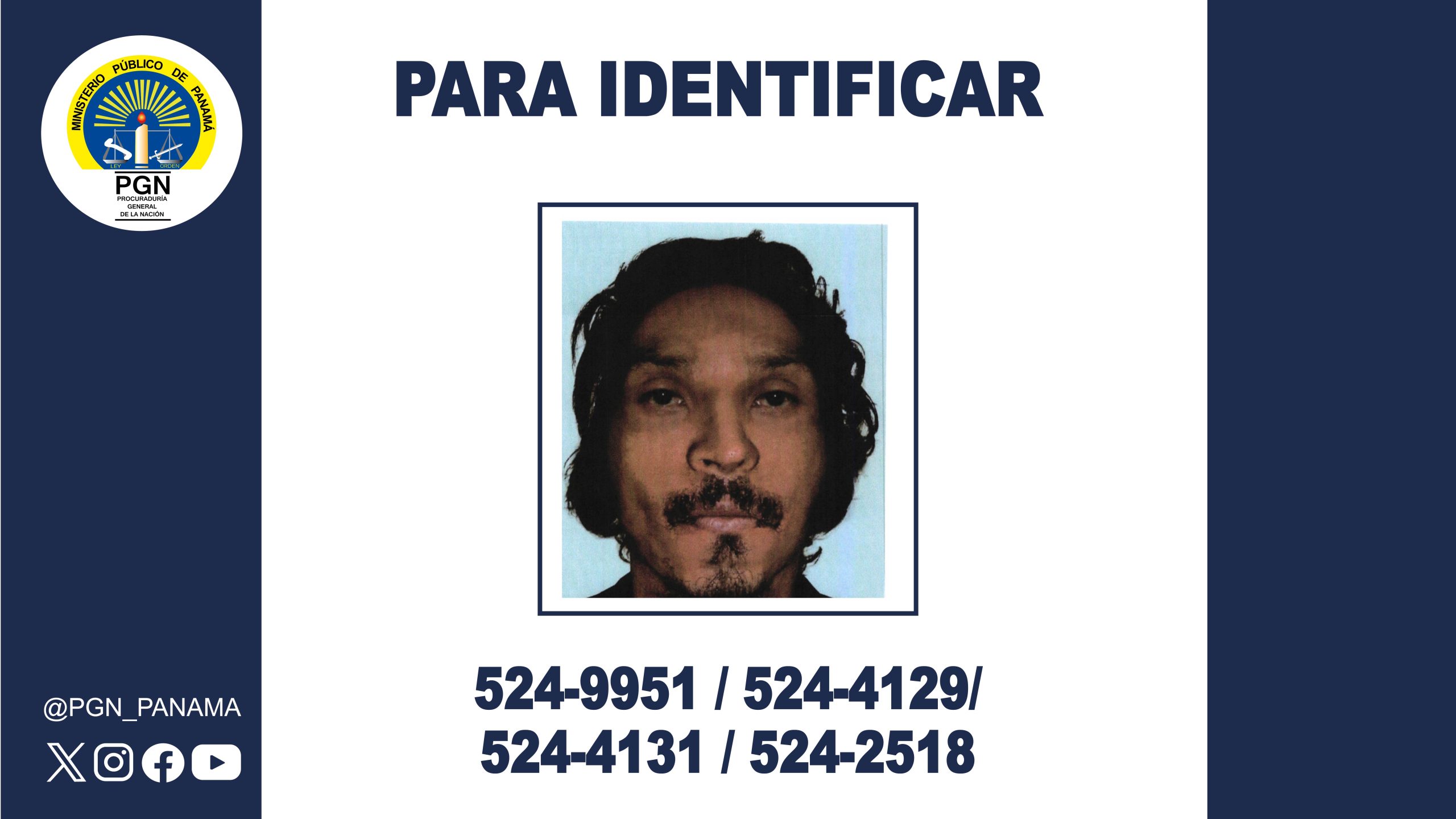 De tener conocimiento de la identidad de esta persona, por favor comunicarse a los teléfonos 524-9951 o 524-4129 de la Sección de Homicidio y Femicidio o al 524-2518 de la División de Homicidio de la Dirección de Investigación Judicial, DIJ.