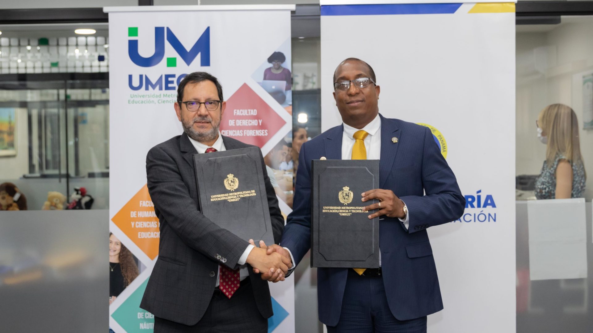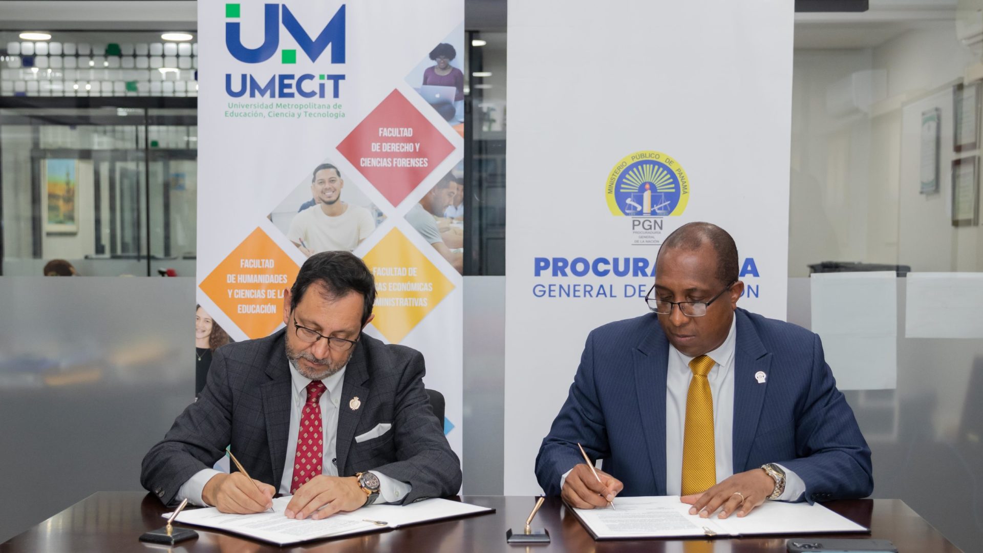 El Procurador General de la Nación, Javier Enrique Caraballo Salazar, junto al Rector de la Universidad Metropolitana de Educación, Ciencia y Tecnología (UMECIT), José Alberto Nieto Rojas firmaron un convenio de cooperación mutua con el objetivo de establecer las bases entre las entidades firmantes en el ámbito de capacitación técnica, científica y cultural prácticas profesionales y otras actividades de desarrollo educativo que sean de interés común.