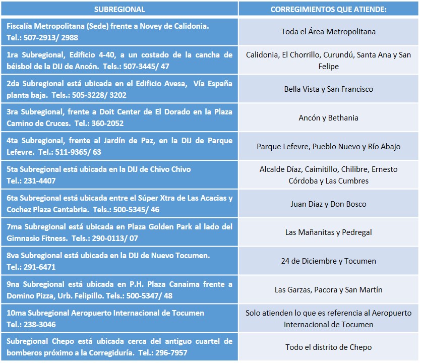 El Ministerio Público de Panamá informa que durante la celebración de la Semana Santa, la Sección de Atención Primaria de la Fiscalía Metropolitana mantiene su horario regular de 24 horas, por lo cual en el momento de presentar una denuncia podrá acercarse a cualquiera de sus Subregionales en el Área Metropolitana del país.