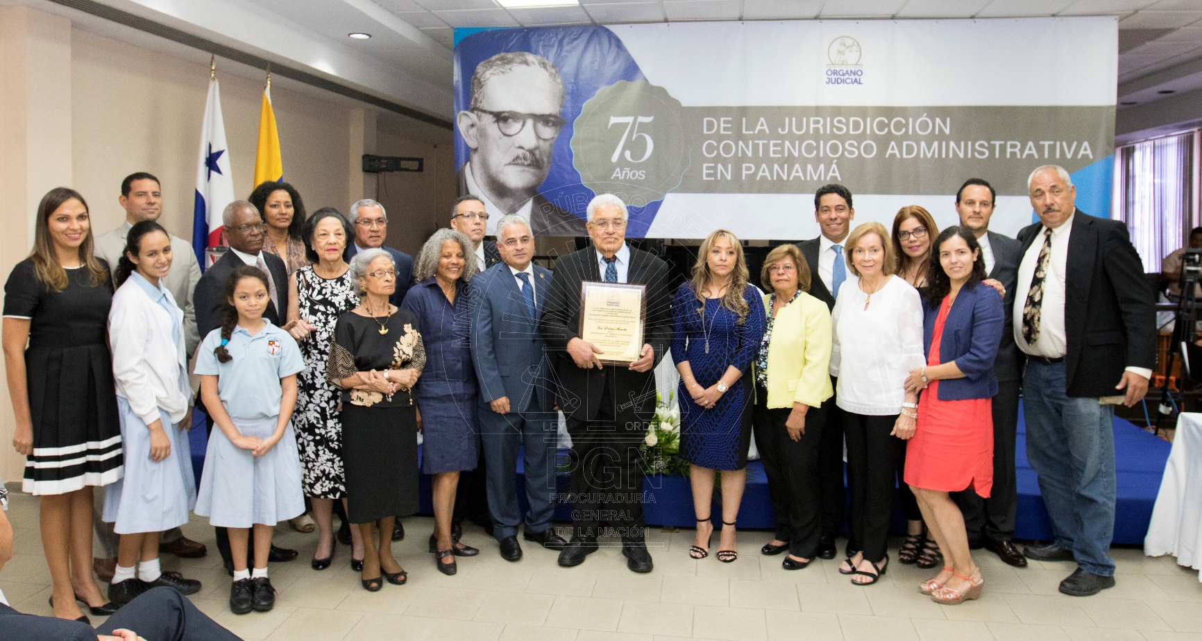 En acto de conmemoración de los 75 años de la Jurisdicción Contencioso Administrativa de la Corte Suprema de Justicia realizado hoy 30 de abril, participó como invitado especial en representación de la Procuradora General de la Nación, Kenia I. Porcell D., el Secretario General, Rolando Rodríguez Cedeño; acto efectuado en la sala de audiencia del Segundo Tribunal de Justicia donde se hizo un reconocimiento póstumo al Dr. José Dolores Moscote (Q.E.P.D.), primer Presidente del Tribunal Contencioso Administrativo, siendo recibida la placa por sus familiares.