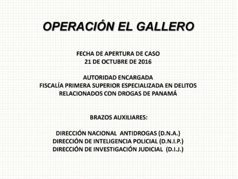 El Ministerio Público informa al país que desde el día de ayer se dio inicio a una “Operación de Drogas” denominada “El Gallero”, a través de la cual se desarticuló una estructura criminal que operaba en las provincias de Los Santos y Chiriquí.