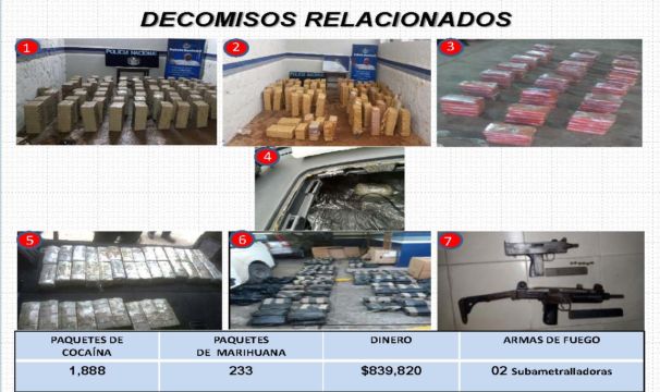 En este espacio de tiempo, las distintas actuaciones de las Fiscalías de Drogas con los estamentos de Seguridad (Senan, Senafront y Policía Nacional) lograron incautar 2.1 toneladas de drogas, 4 vehículos con doble fondo, 2 armas de guerra y aproximadamente un millón de dólares en efectivo.