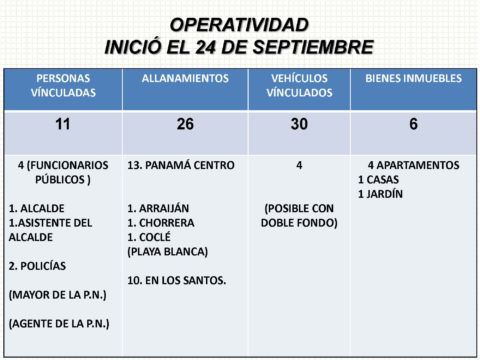 Esta operación inició hace 11 meses, de oficio, con la colaboración de los estamentos de seguridad, bajo los parámetros del Sistema Penal Acusatorio, lo que significa, que las diligencias de seguimiento y vigilancia, aprehensión de personas y bienes, han sido y serán sometidas a control de los Jueces de Garantía en las provincias de Panamá y Los Santos.