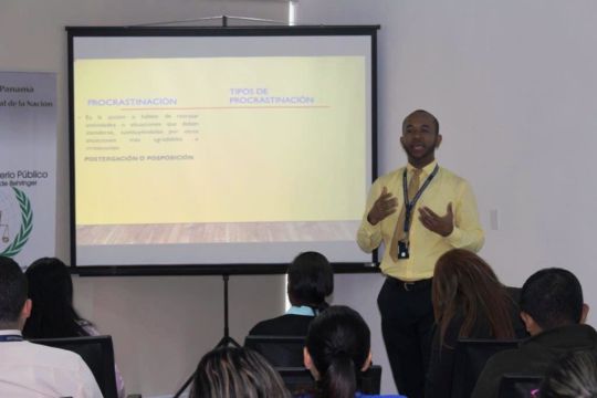 Como facilitadores participaron el licenciado Juan José Vega y el licenciado Armando Prado de la Oficina de Implementación del Sistema Penal Acusatorio (OISPA) de la Procuraduría General de la Nación, así como el licenciado Luis Arias de la Oficina de Desarrollo organizacional de la institución, quienes abordaron temas dirigidos a optimizar el tiempo de trabajo dentro de la organización, definieron cómo establecer metas y objetivos relacionados con el uso del tiempo, cómo establecer indicadores de mejoramiento, planear y organizar por franjas de tiempo, además de establecer las diferencias entre lo urgente y lo importante.
