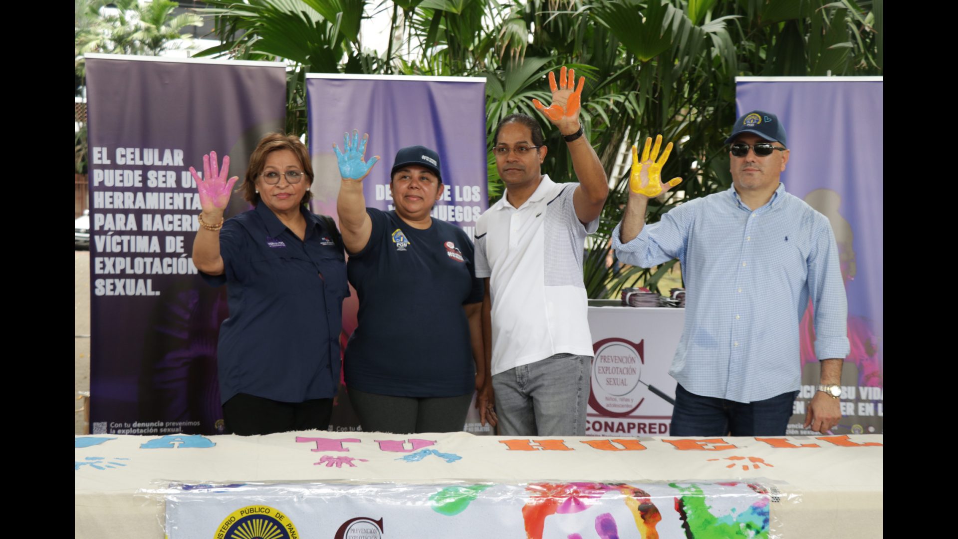 La actividad que se realizó en el Parque Urracá contó además con la participación de diferentes instituciones como la Policía Nacional, Cruz Roja, Ministerio de Desarrollo Social, el Ministerio de la Mujer, Aldeas Infantiles, Secretaría Nacional de Niñez y Familia entre otros. Las personas que se acercaron plasmaron sus huellas y dejaron un mensaje sumándose al esfuerzo y en contra de este flagelo que afecta a nuestros niños, niñas y adolescentes.