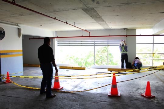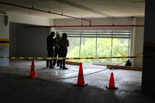 Peritos de la Universidad Tecnológica de Panamá (UTP) realizaron este jueves un peritaje al sitio del accidente en Costa del Este, donde el miércoles 3 personas perdieron la vida y una quedó gravemente herida cuando el auto donde viajaban cayó del 4to piso del PH Breeze.