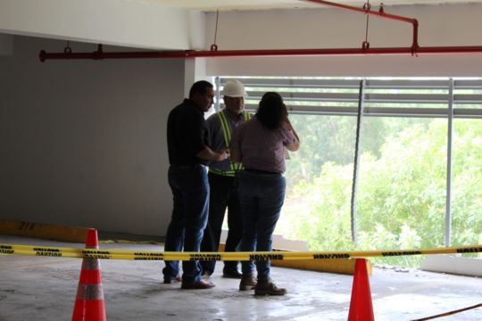 Los ingenieros revisaron la estructura del muro de contención que se mantiene en el estacionamiento. También revisaron el vehículo Mini Cooper, que se mantiene custodiado en un patio de grúas privado.