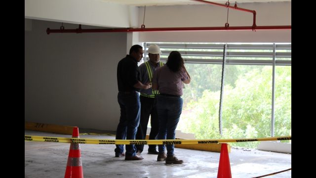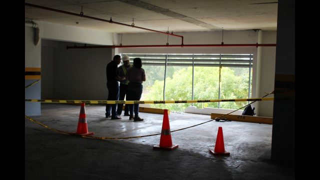 Los ingenieros revisaron la estructura del muro de contención que se mantiene en el estacionamiento. También revisaron el vehículo Mini Cooper, que se mantiene custodiado en un patio de grúas privado.