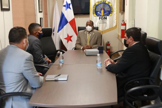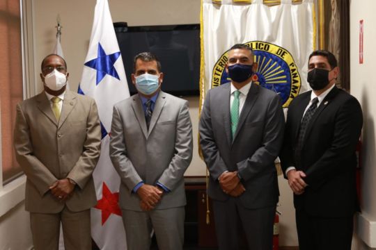 El Procurador General de la Nación encargado, Javier Caraballo, recibió este miércoles, 17 de marzo de 2021, en su despacho al agregado regional para Centroamérica de Homeland Security Investigations (HSI) del Departamento de Seguridad Nacional de los Estados Unidos, Bernardo Pillot; además de Ritchie Flores, agregado de país para Panamá, Costa Rica y Nicaragua y al señor Eric Arza asesor legal de dicha oficina en Panamá.