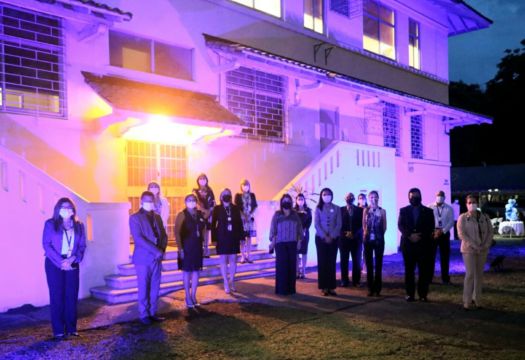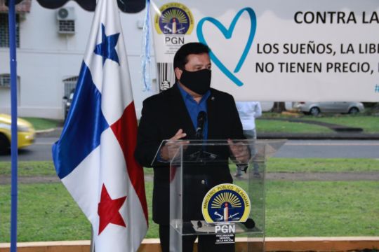 El Procurador General de la Nación, Eduardo Ulloa Miranda, junto a Dayra Campos, de la Comisión Contra la Trata de Personas del Ministerio de Seguridad y Lourdes Gutiérrez de la Oficina de las Naciones Unidas Contra la Droga y el Delito (UNODC), realizó el encendido de luces del edificio sede de la Procuraduría General de la Nación, como acto simbólico que da inicio a las actividades que desarrolla el Ministerio Público (MP) en septiembre, mes de la campaña “Corazón Azul contra la Explotación Sexual y Trata de Personas”.