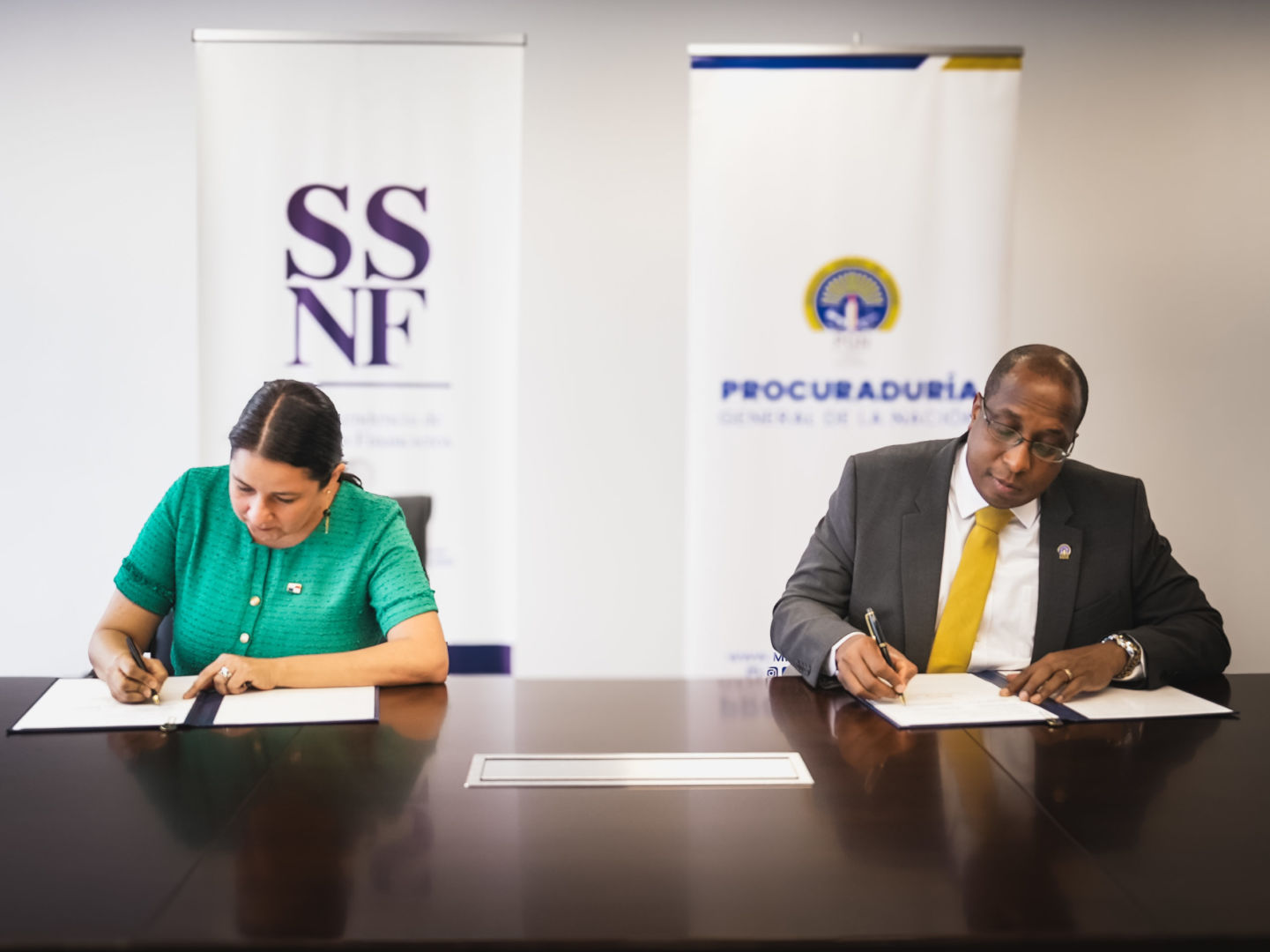 El Procurador General de la Nación, Javier E. Caraballo Salazar y la Superintendente Dayra Carrizo Castillero de la Superintendencia de Sujetos No Financieros Panamá, en la mañana de hoy, jueves 27 de junio de 2024, firmaron un Convenio Marco de Cooperación Interinstitucional, para la ejecución de cursos de capacitación y fortalecimiento por ambas partes.