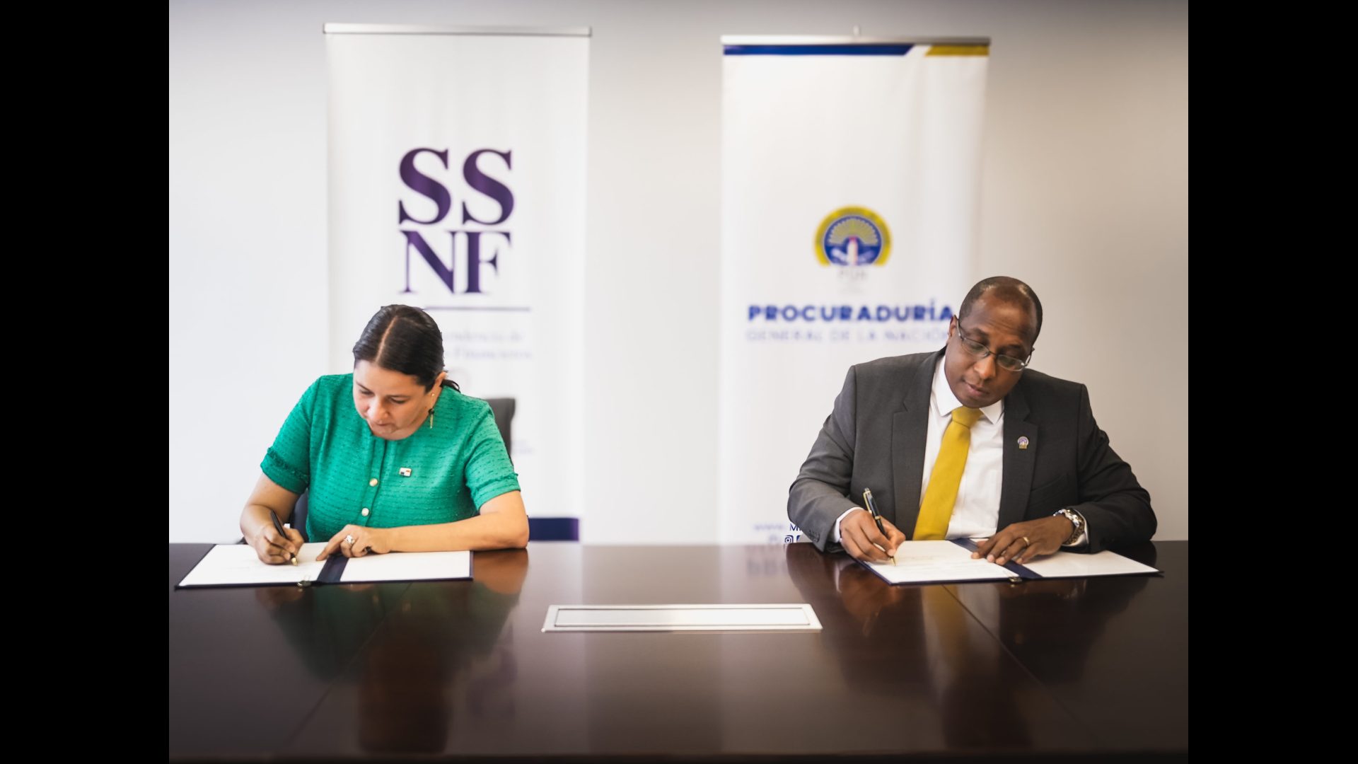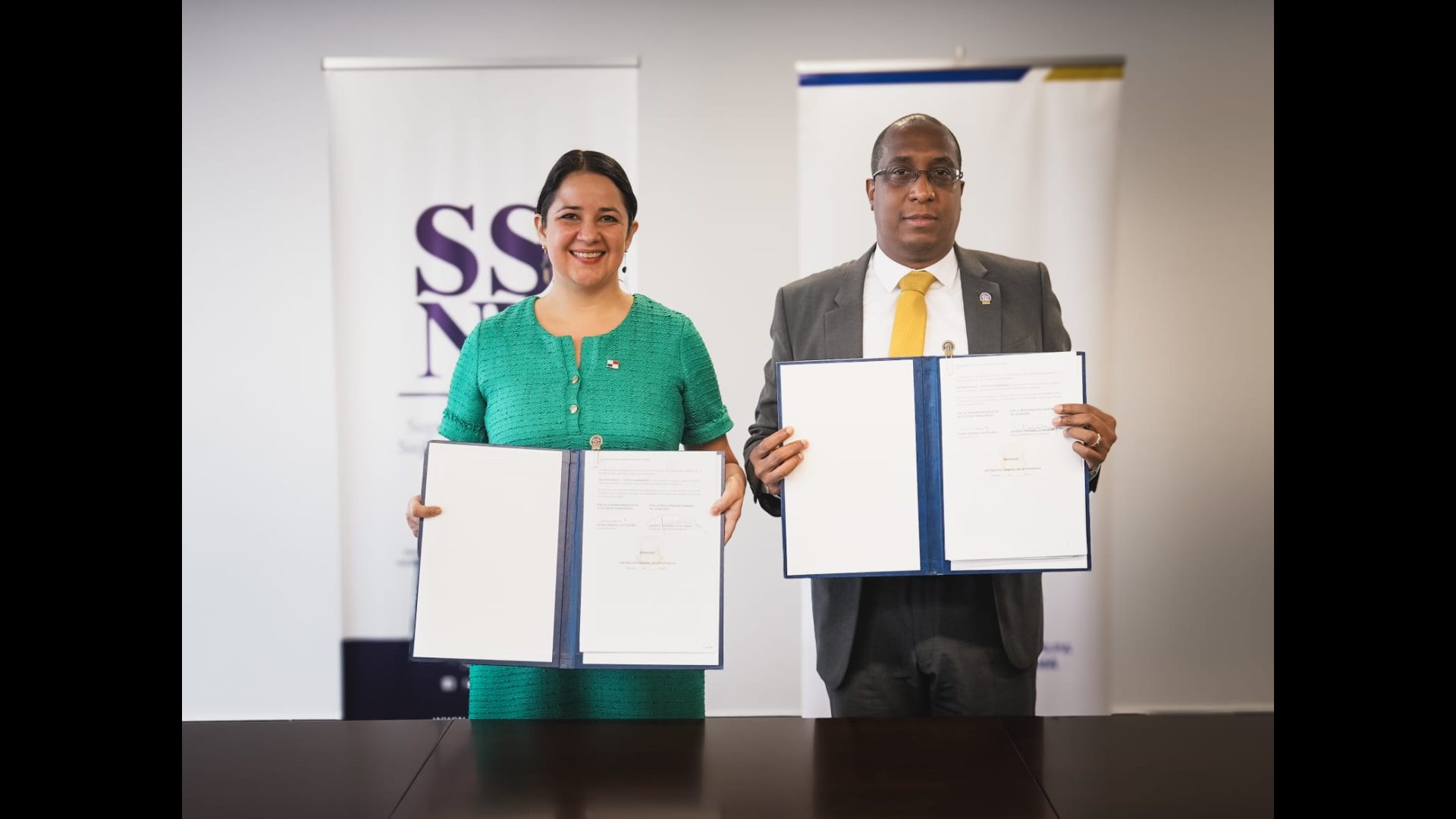 El Procurador General de la Nación, Javier E. Caraballo Salazar y la Superintendente Dayra Carrizo Castillero de la Superintendencia de Sujetos No Financieros Panamá, en la mañana de hoy, jueves 27 de junio de 2024, firmaron un Convenio Marco de Cooperación Interinstitucional, para la ejecución de cursos de capacitación y fortalecimiento por ambas partes.