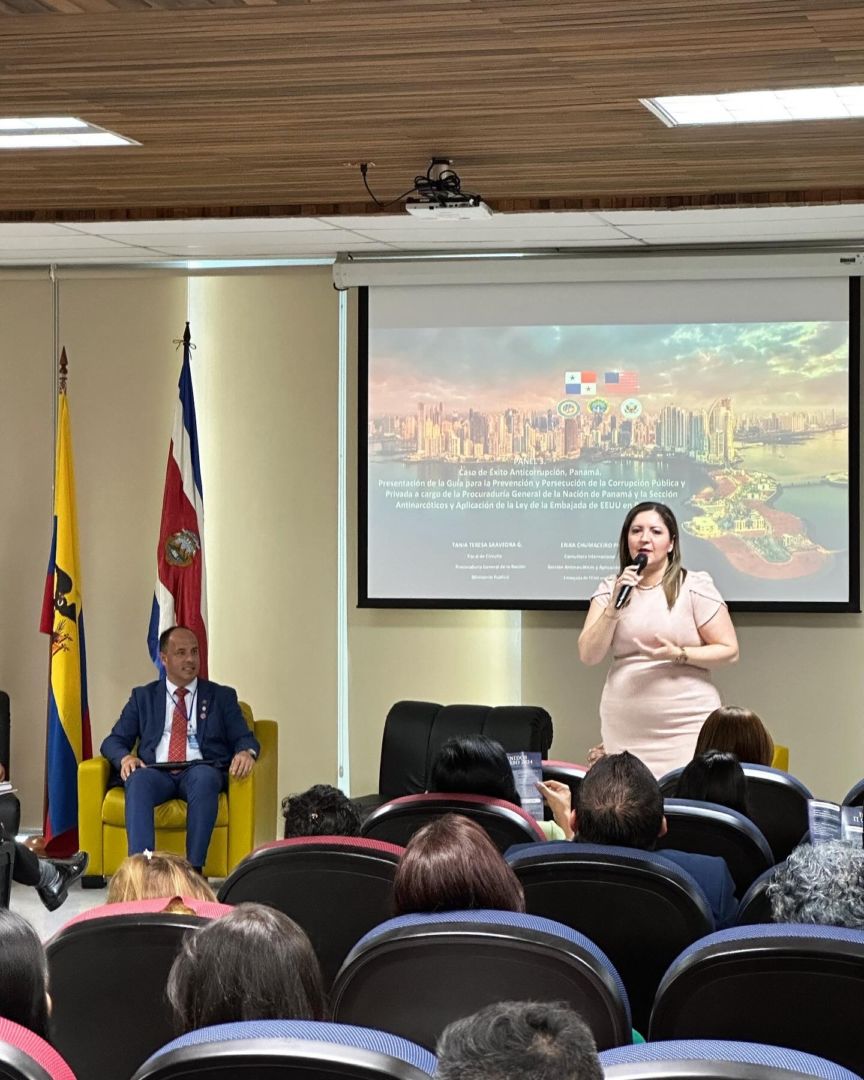 En el marco de este importante encuentro jurídico regional se realizó la Presentación de la Guía para la Prevención y Persecución de la Corrupción Pública y Privada a cargo de la Procuraduría General de la Nación de Panamá, representada por la Fiscal Tania Saavedra y por la Sección Antinarcóticos y Aplicación de la Ley de la Embajada de EEUU en Panamá, a través de la consultora internacional, Erika Chumaceiro Pérez.