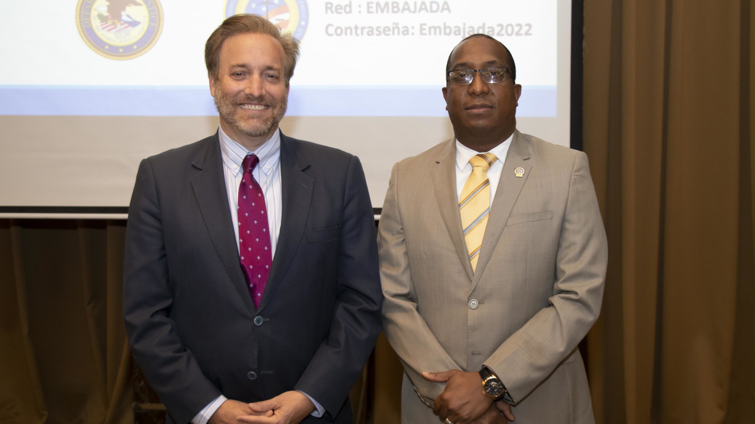 El Procurador General de la Nación, Javier Enrique Caraballo Salazar, junto al jefe de misión de la Embajada de EE.UU, Stewart Tuttle, participó de la apertura de la reunión del grupo de trabajo de Criptomonedas del Hemisferio Occidental que se realiza en nuestro país, organizado por la oficina Internacional de Asistencia, Desarrollo y Capacitación (OPDAT) del Departamento de Justicia, con la colaboración de la Oficina Internacional de Asuntos Antinarcóticos y Aplicación de la Ley (INL) del Departamento de Estado de los Estados Unidos de América.