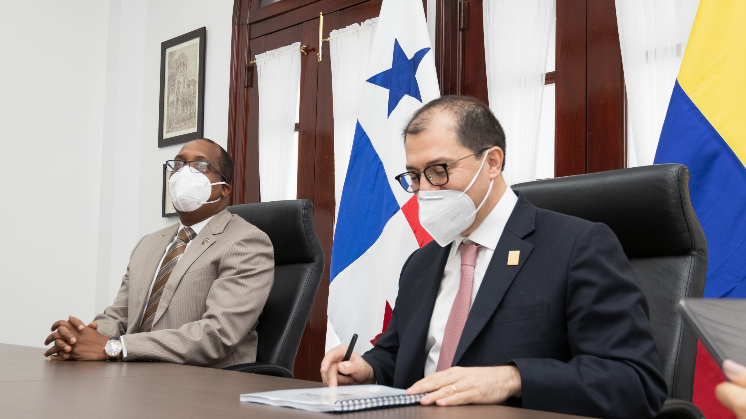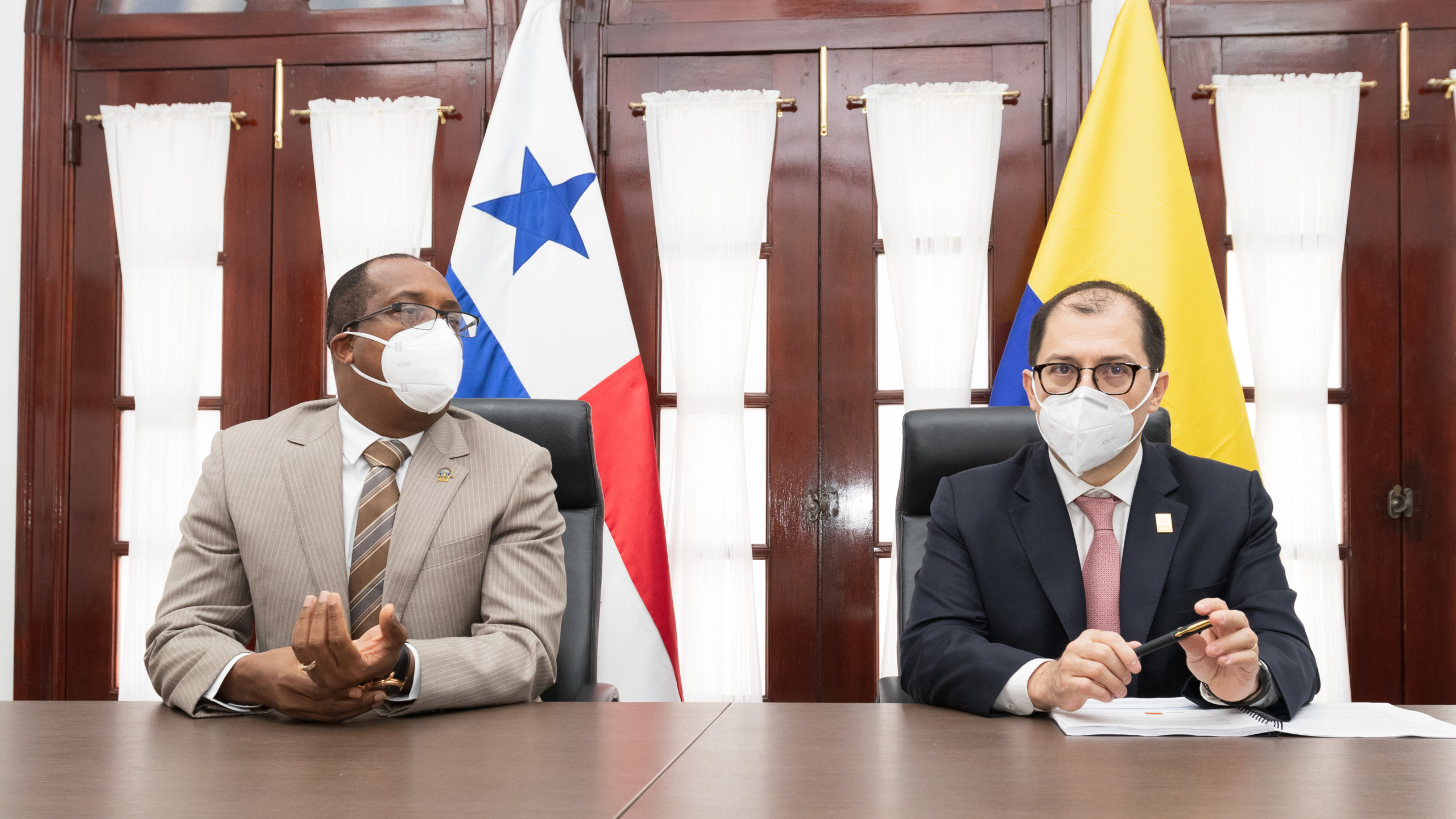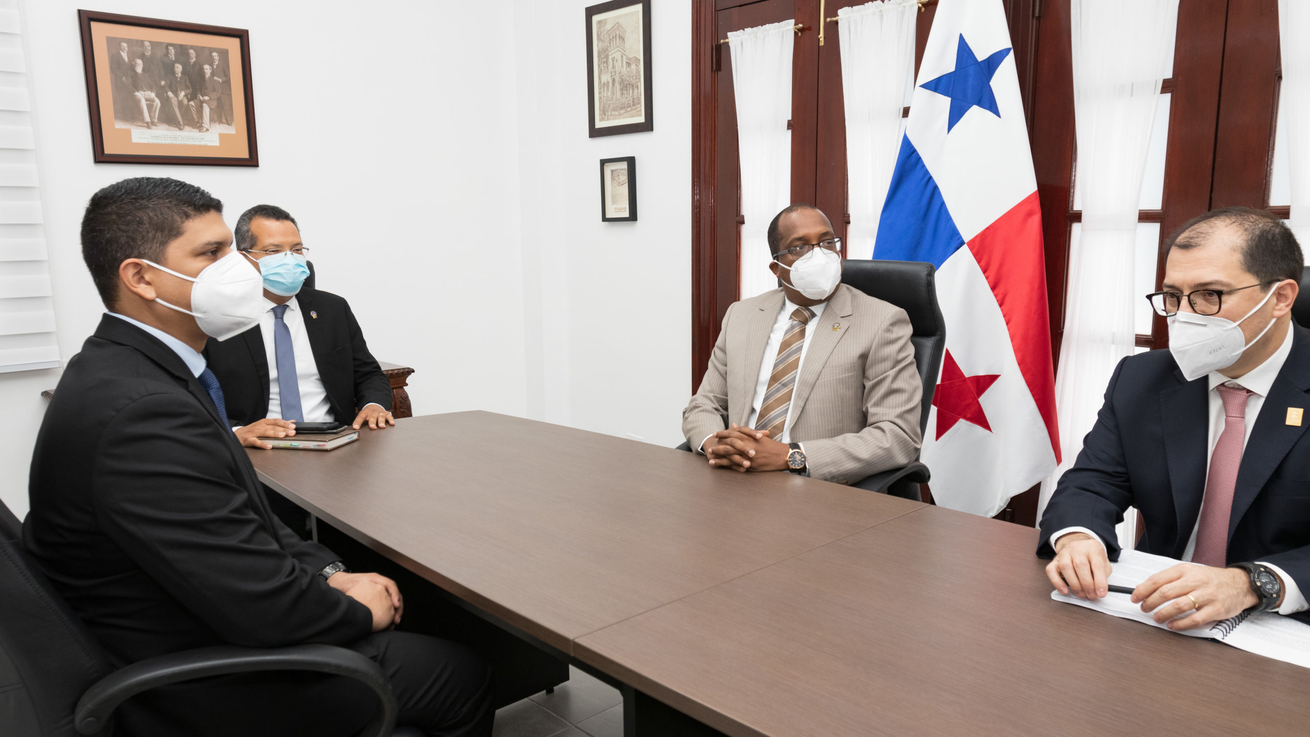 El Procurador General de la Nación, Javier Enrique Caraballo Salazar, se reunió este martes, 5 de abril de 2022 con el Fiscal General de Colombia, Francisco Barbosa y su equipo de trabajo, evaluando acciones conjuntas que se adelantan entre los Ministerios Públicos de ambos países en materia de tráfico de migrantes, trata de personas, crimen organizado transnacional y delitos financieros.