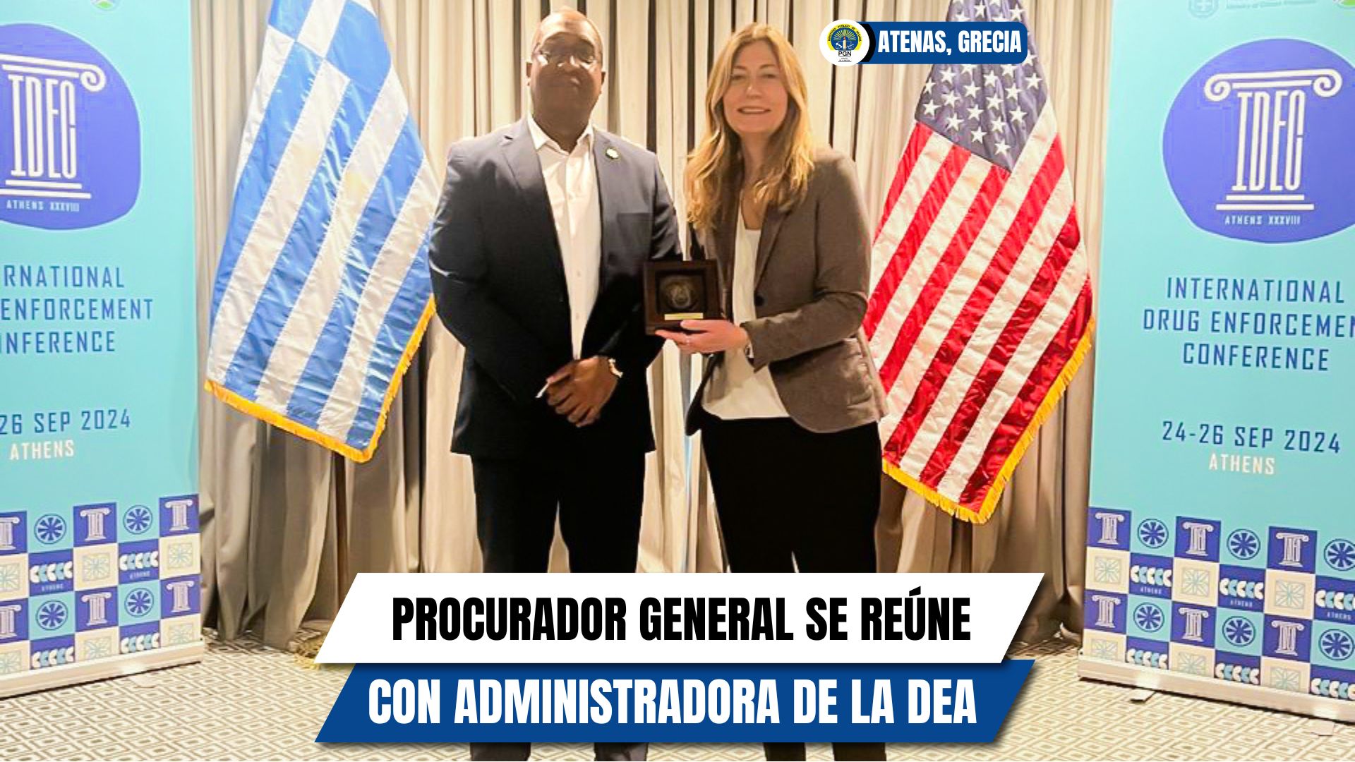 El Procurador General de la Nación, Javier Enrique Caraballo Salazar, sostuvo una importante reunión con la Administradora de la Oficina de Administración de Control de Drogas (DEA por sus siglas en inglés) de los Estados Unidos de América, Ann Milgram, en la que abordaron tema de interés relacionados a los retos en la lucha contra el narcotráfico y blanqueo de capitales en la región.