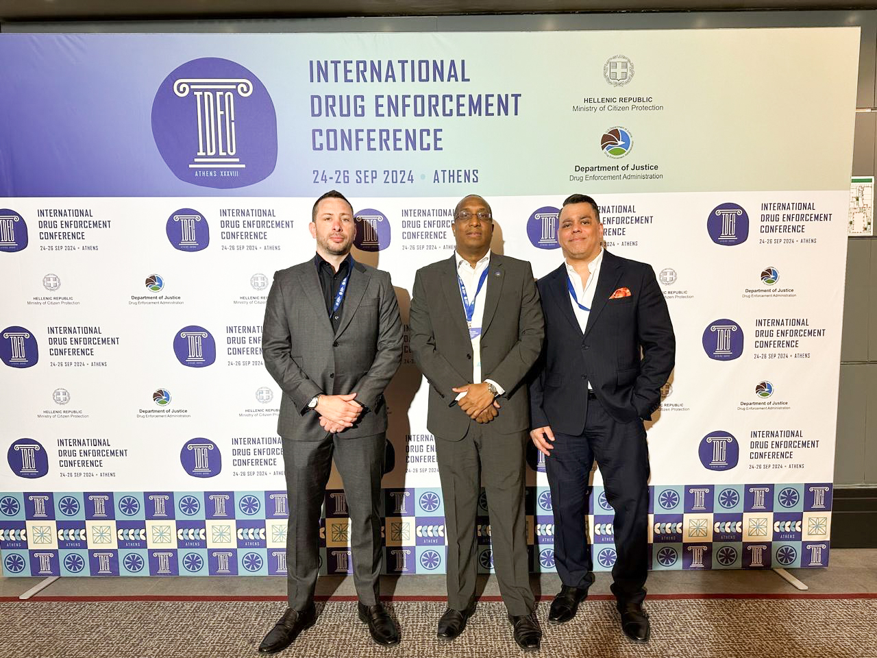 El citado encuentro se produjo en el marco de la XXXVIII la Conferencia Internacional sobre Control Drogas (IDEC por sus siglas en inglés) titulada: Más allá de las fronteras: ampliar las alianzas globales, que se desarrolla en Atenas, Grecia con la participación de más de 135 países y es la principal planificación operativa del mundo, donde las agencias de aplicación de la ley de los países participantes se reúnen para establecer redes y desarrollar estrategias y operaciones antidrogas contra las organizaciones de narcotráfico a nivel mundial, y este año es co-presidida por el Gobierno de Grecia.