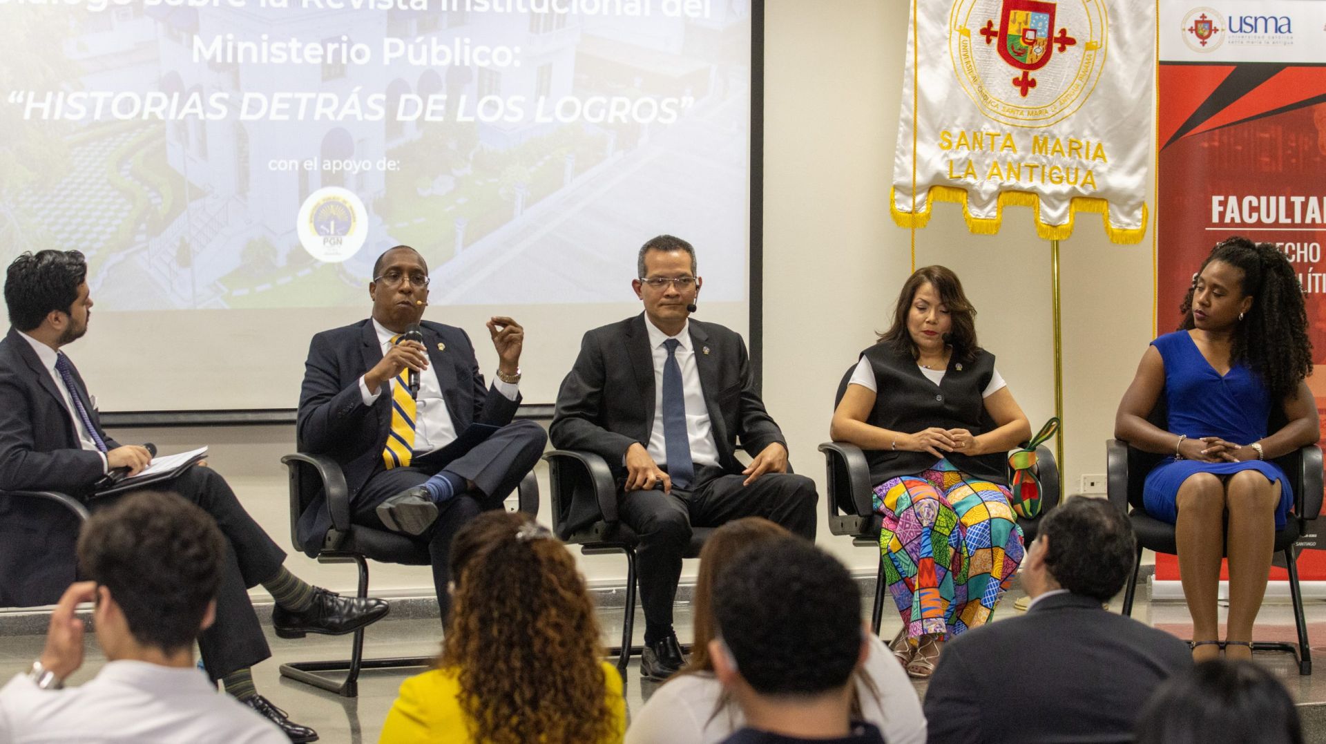 El Procurador General de la Nación, Javier Enrique Caraballo Salazar, participó este miércoles, 30 de octubre de 2024, en un conversatorio organizado por la Asociación de Estudiantes de la Facultad de Derecho y Ciencias Políticas de la USMA, en el que principalmente abordaron el contenido de la revista institucional “Historias Detrás de los Logros”, un compendio de tres años de su gestión al frente del Ministerio Público.
