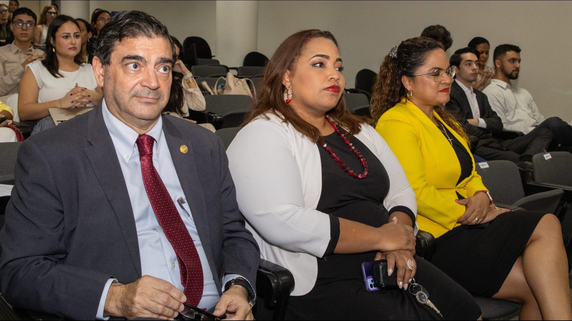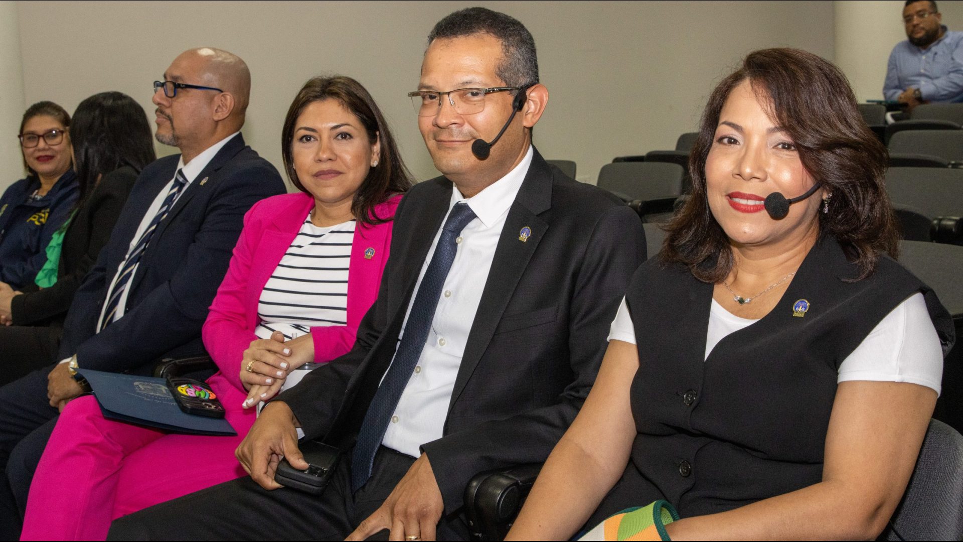 Acompañaron al Procurador Caraballo en este conversatorio el Francisco Javier Blanco, Rector Magnífico de la Universidad Católica Santa María la Antigua; Secretario General, José Candanedo; la Secretaria Administrativa, Nigma Muñoz y la directora de Recursos Humanos, Helen Campos. Igualmente asistieron como invitados los fiscales superiores Martha Barrios, de la Fiscalía Primera Superior en Delitos Relacionados con Drogas; Emeldo Márquez, de la Fiscalía Primera Superior Especializada contra la Delincuencia Organizada; la fiscal Sherly Barría, coordinadora de la Sección de Atención Primaria Metropolitana y la asistente de Despacho Superior, Eleila Ruiz.