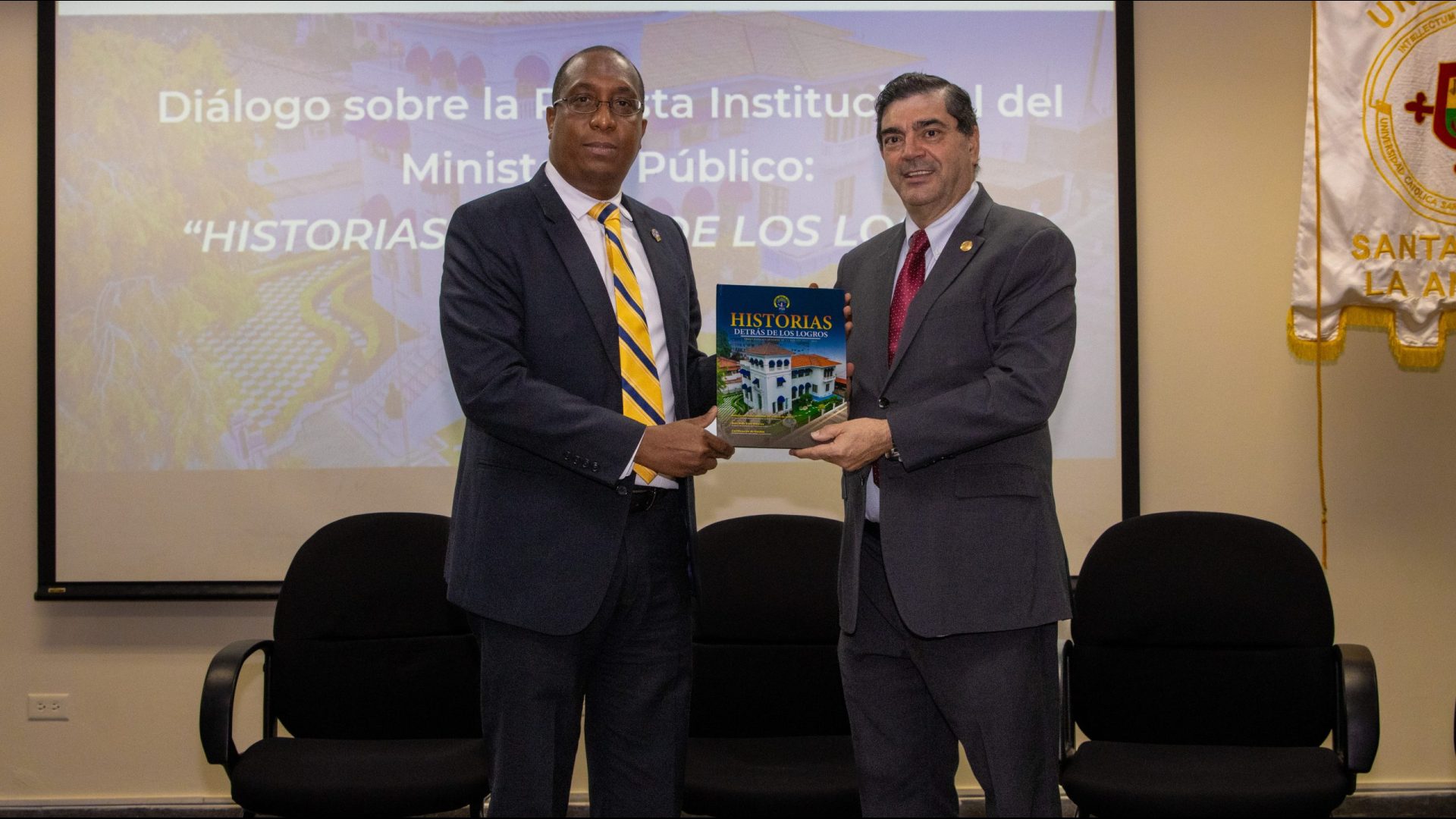 El Procurador General de la Nación, Javier Enrique Caraballo Salazar, participó este miércoles, 30 de octubre de 2024, en un conversatorio organizado por la Asociación de Estudiantes de la Facultad de Derecho y Ciencias Políticas de la USMA, en el que principalmente abordaron el contenido de la revista institucional “Historias Detrás de los Logros”, un compendio de tres años de su gestión al frente del Ministerio Público.