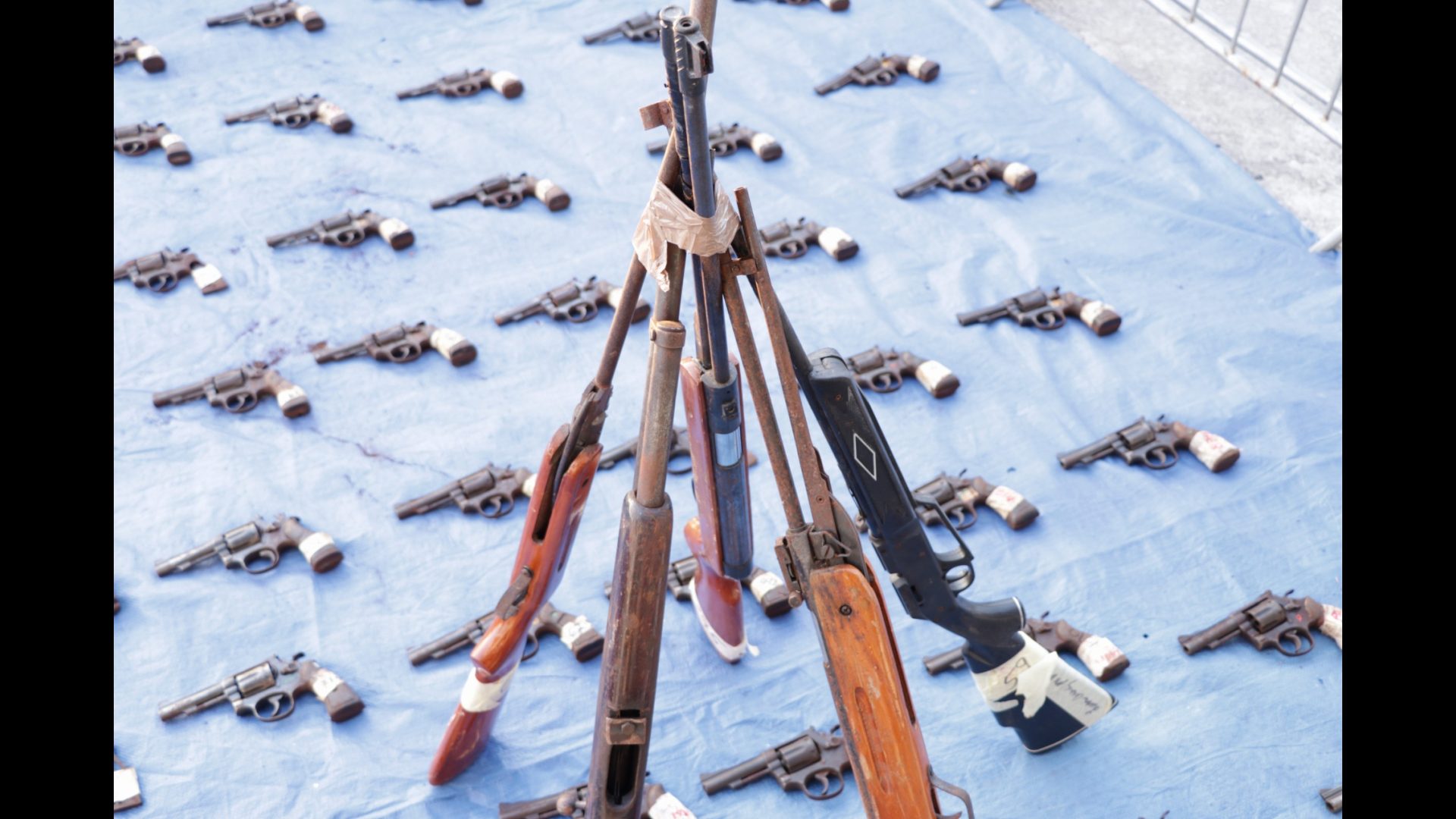 En este acto donde participaron directores de estamentos de seguridad, Migración e instituciones de emergencias, fueron destruidas 589 son revólveres, 57 pistolas, 3 fusiles, 25 escopetas, 24 rifles, 2 subametralladoras, 117 pellet, 3 armazones y 3 niples.