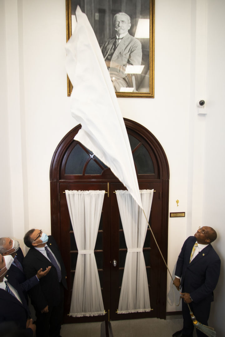 En compañía de los Magistrados de la Corte Suprema de Justicia y el Ministro de Seguridad, Juan Pino, el Procurador General de la Nación encargado develó el retrato del Dr. Belisario Porras, ubicado en las escalares que conduce a la planta alta de la casa.
