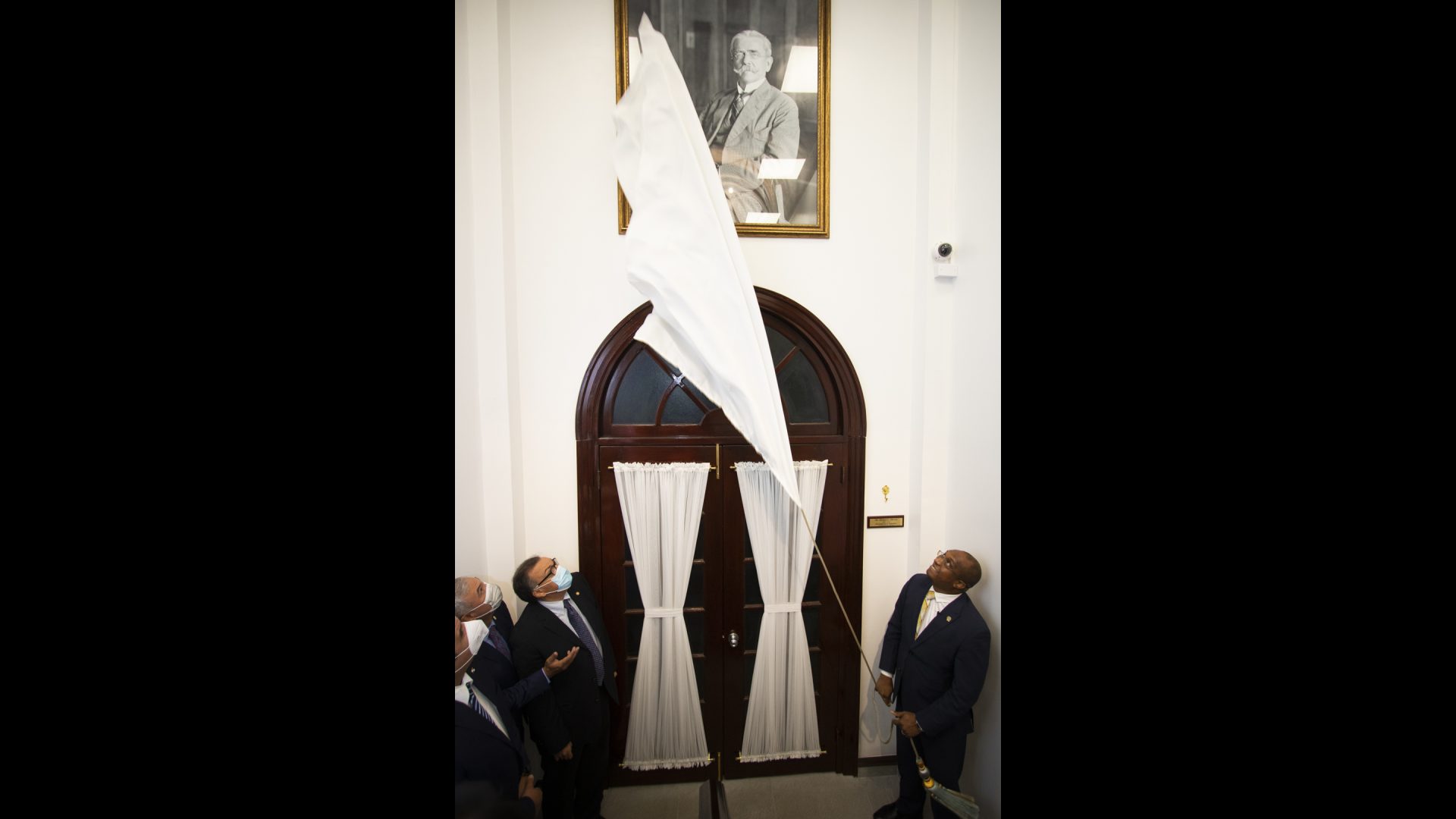 En compañía de los Magistrados de la Corte Suprema de Justicia y el Ministro de Seguridad, Juan Pino, el Procurador General de la Nación encargado develó el retrato del Dr. Belisario Porras, ubicado en las escalares que conduce a la planta alta de la casa.