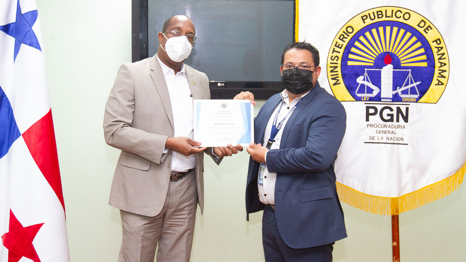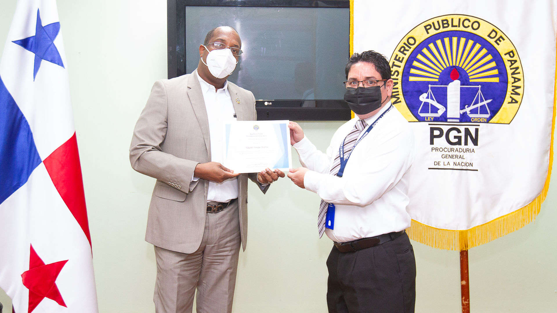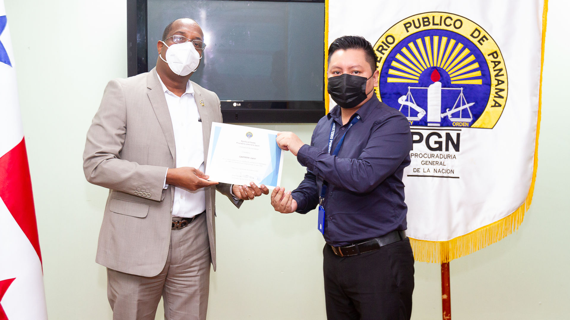 El Procurador General de la Nación encargado, Javier Caraballo Salazar, hizo entrega de certificados de reconocimiento a funcionarios de informática y estadísticas por su trabajo excepcional y su contribución continua en el cumplimiento del 100% en el monitoreo de transparencia de los sitios web que realiza la Autoridad Nacional de Transparencia y Acceso a la Información (ANTAI).
