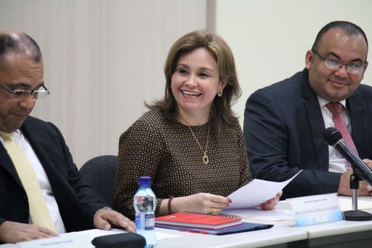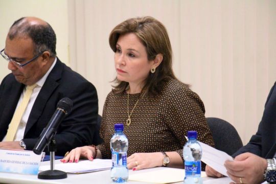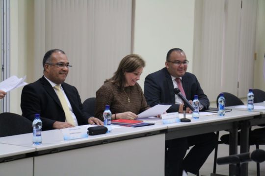 La Procuradora General de la Nación, Kenia I. Porcell D., en compañía del Secretario General Rolando Rodríguez Cedeño y el Fiscal Julio Domínguez, participaron en la reunión de la Comisión Especial de Evaluación para las entrevistas a los aspirantes a magistrados de la Corte Suprema de Justicia.