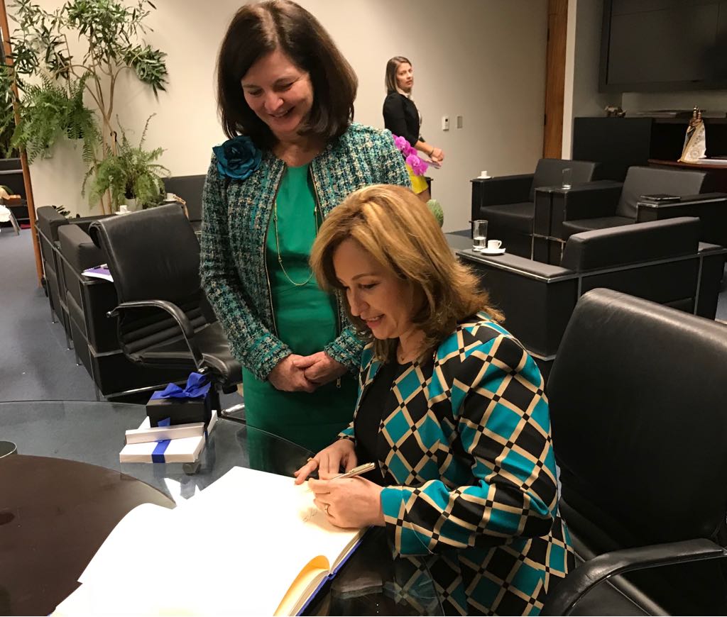 La Procuradora General de la Nación de Panamá, Kenia I. Porcell D. y Presidenta de la Asociación Iberoamericana de Ministerios Públicos sostuvo hoy una reunión bilateral con la Procuradora General de la República Federativa de Brasil, Raquel Dodge en el país suramericano.