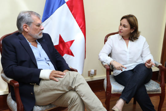 La Procuradora General de la Nación, Kenia I. Porcell D. recibió la visita de cortesía del exprocurador Especial de Perú, y presidente de Transparencia Internacional, José Ugaz en el marco de la realización de la 17ª Conferencia Internacional Anticorrupción 2016 que se desarrolla en la ciudad de Panamá.