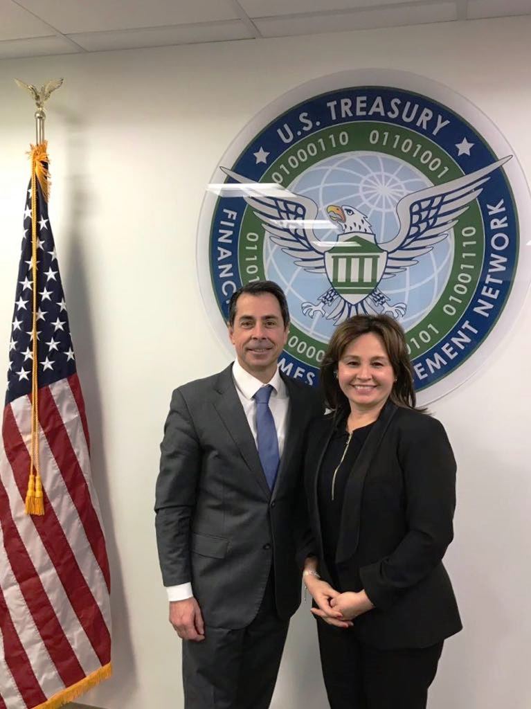 La Procuradora General de la Nación de Panamá, Kenia I. Porcell D., se reunió con Kenneth A. Blanco, Director de Financial Crimes Enforcement Network (Fincen) una entidad del Departamento del Tesoro de los Estados Unidos, para fortalecer los lazos de colaboración entre ambas autoridades en la lucha conjunta contra los delitos financieros, blanqueo de capitales, narcotráfico, crimen organizado, y corrupción.