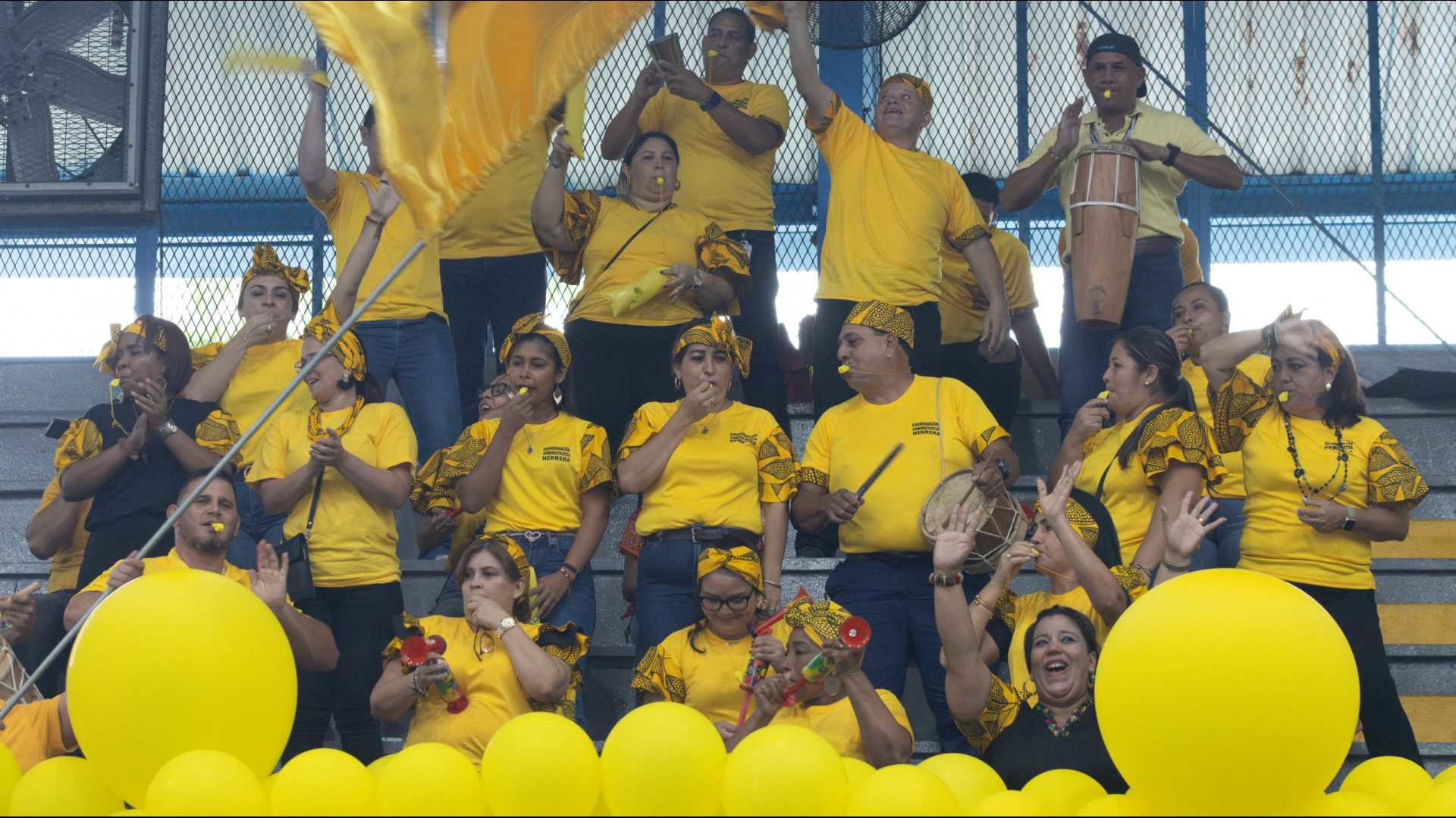 Las barras identificadas con los colores rojo, amarillo, morado, verde, azul, naranja y turquesa, representaron a su candidata, animando en el lugar con el repicar de los tambores, pitos y cornetas, que hacían vibrar el lugar.