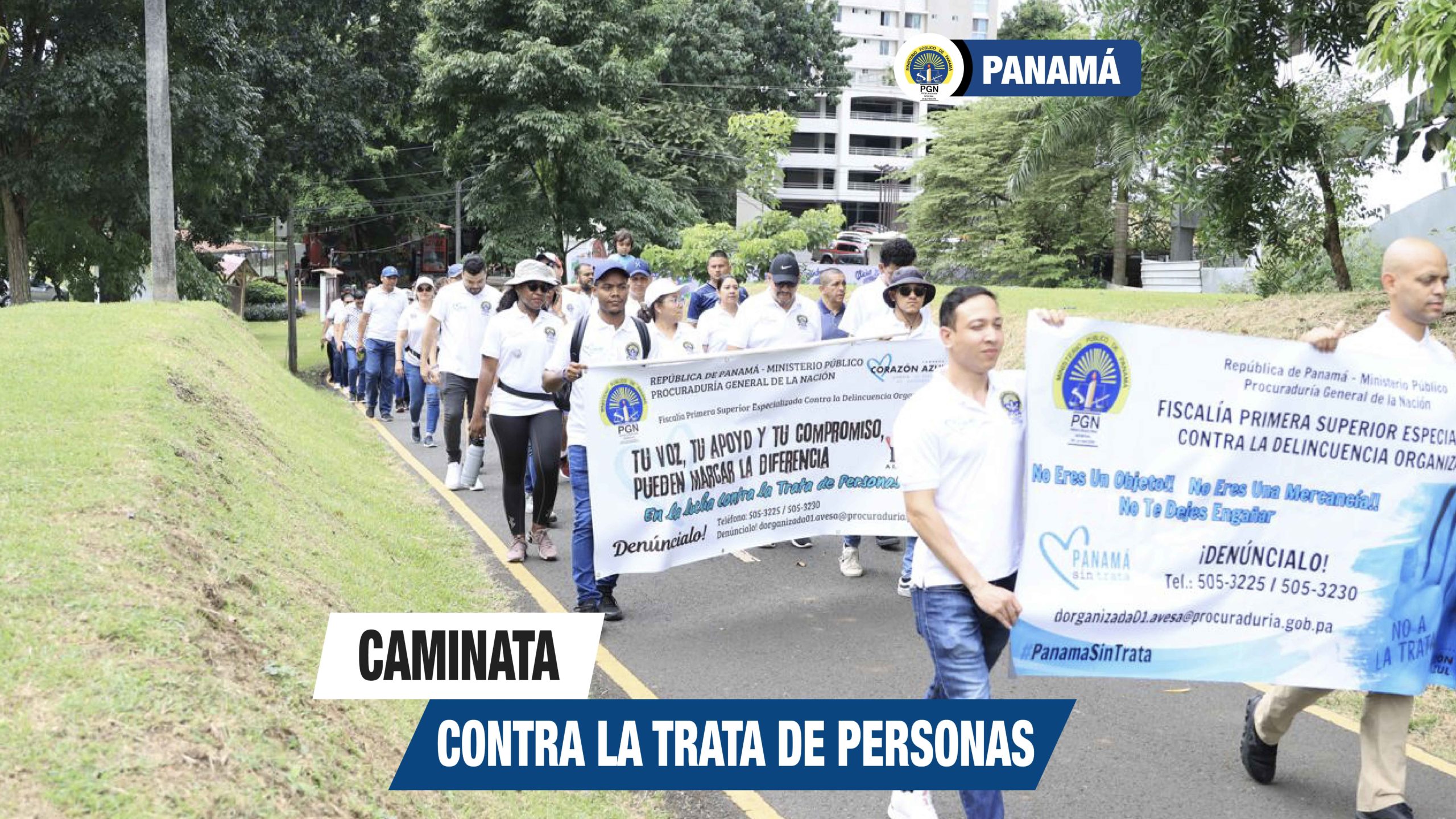 En conmemoración del mes contra la Trata de Personas, funcionarios de la Procuraduría General de la Nación, por iniciativa de la Fiscalía Primera contra por la Delincuencia Organizada realizó una caminata de prevención de este delito, en horas de la mañana de hoy sábado, 28 de septiembre de 2023, en el Parque Recreativo Omar.