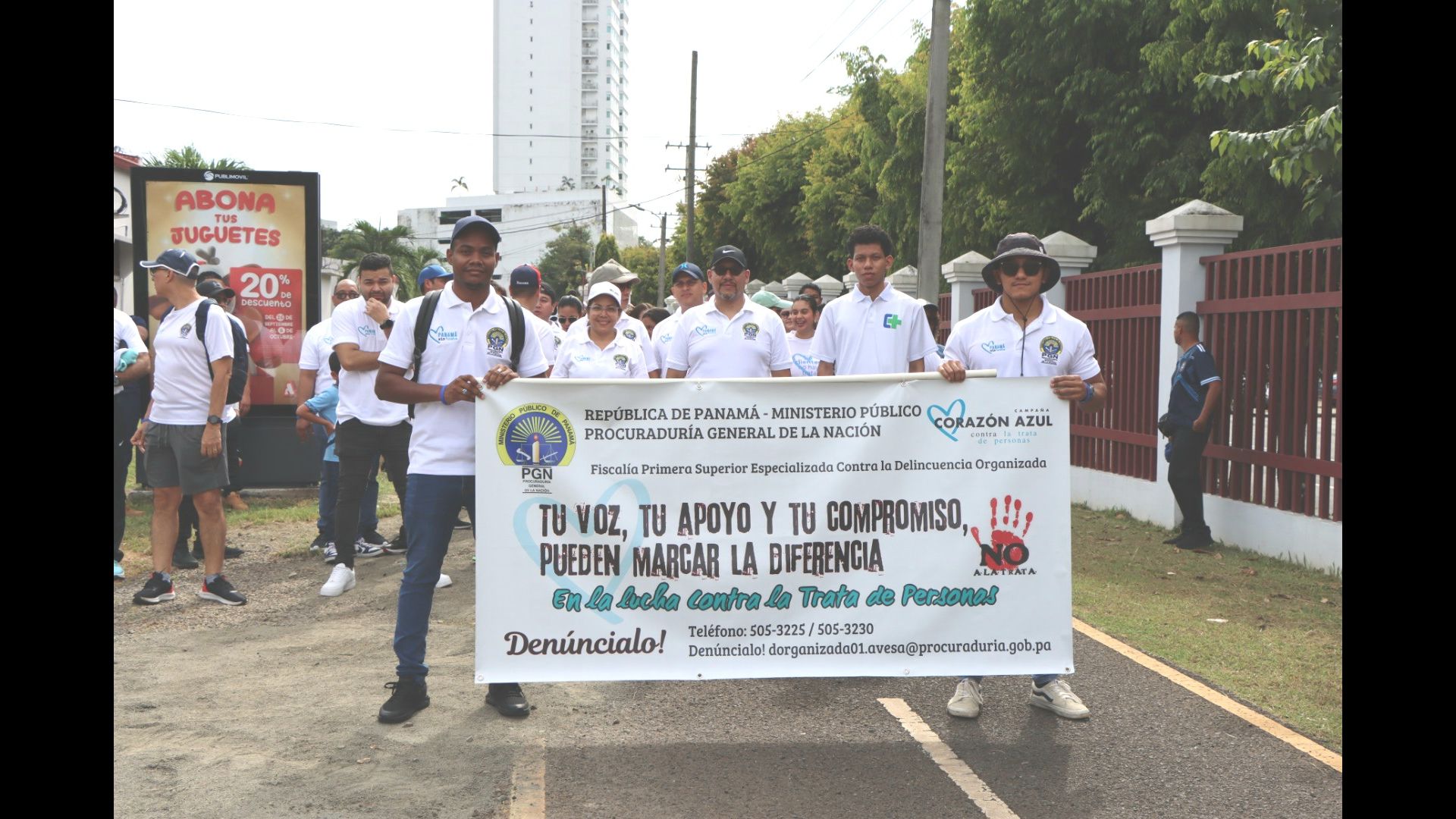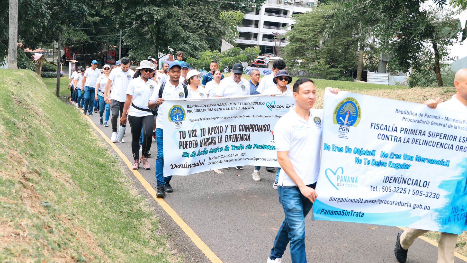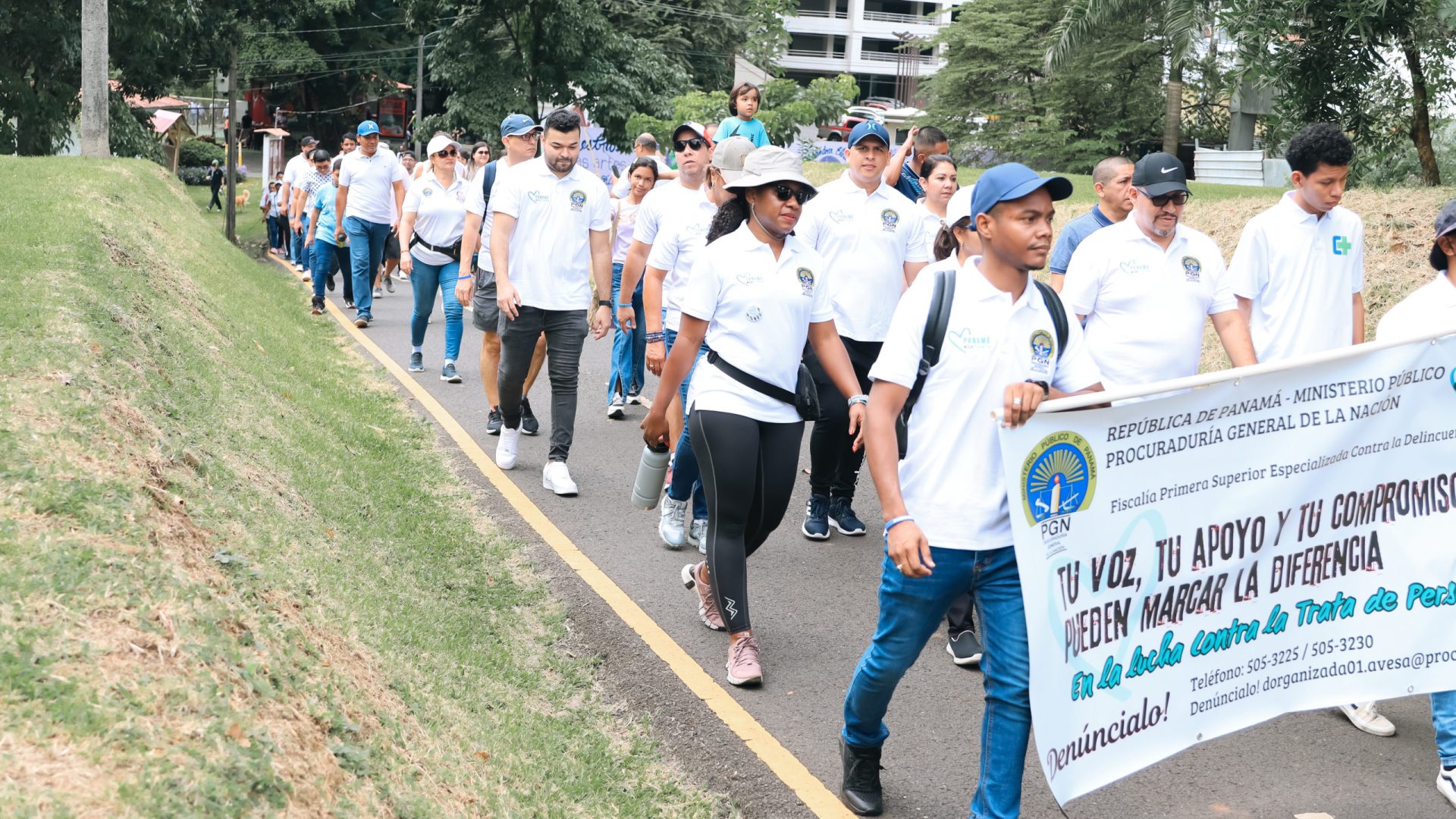En conmemoración del mes contra la Trata de Personas, funcionarios de la Procuraduría General de la Nación, por iniciativa de la Fiscalía Primera contra por la Delincuencia Organizada realizó una caminata de prevención de este delito, en horas de la mañana de hoy sábado, 28 de septiembre de 2023, en el Parque Recreativo Omar.
