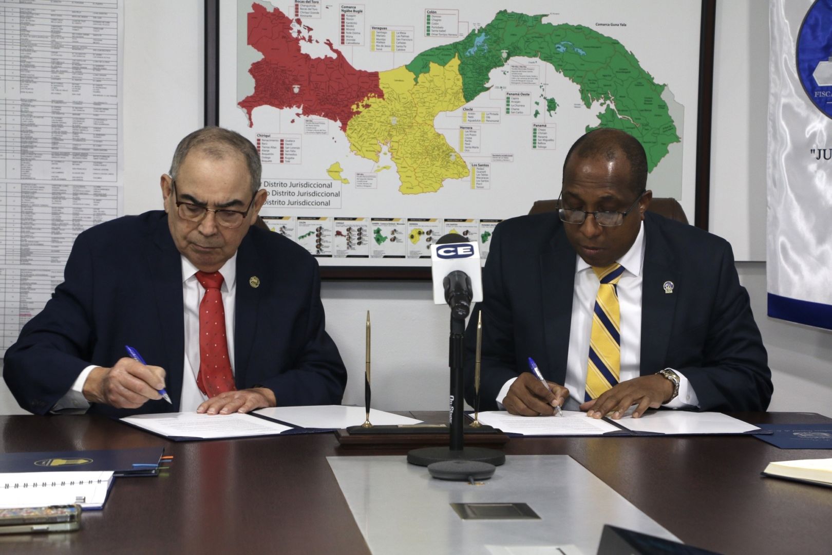 El Procurador General de la Nación Javier Enrique Caraballo Salazar y el Fiscal General Electoral, Dilio Arcia Torres, firmaron un convenio relacionado a la atención de los posibles delitos que se puedan dar durante las elecciones del 5 de mayo de 2024.