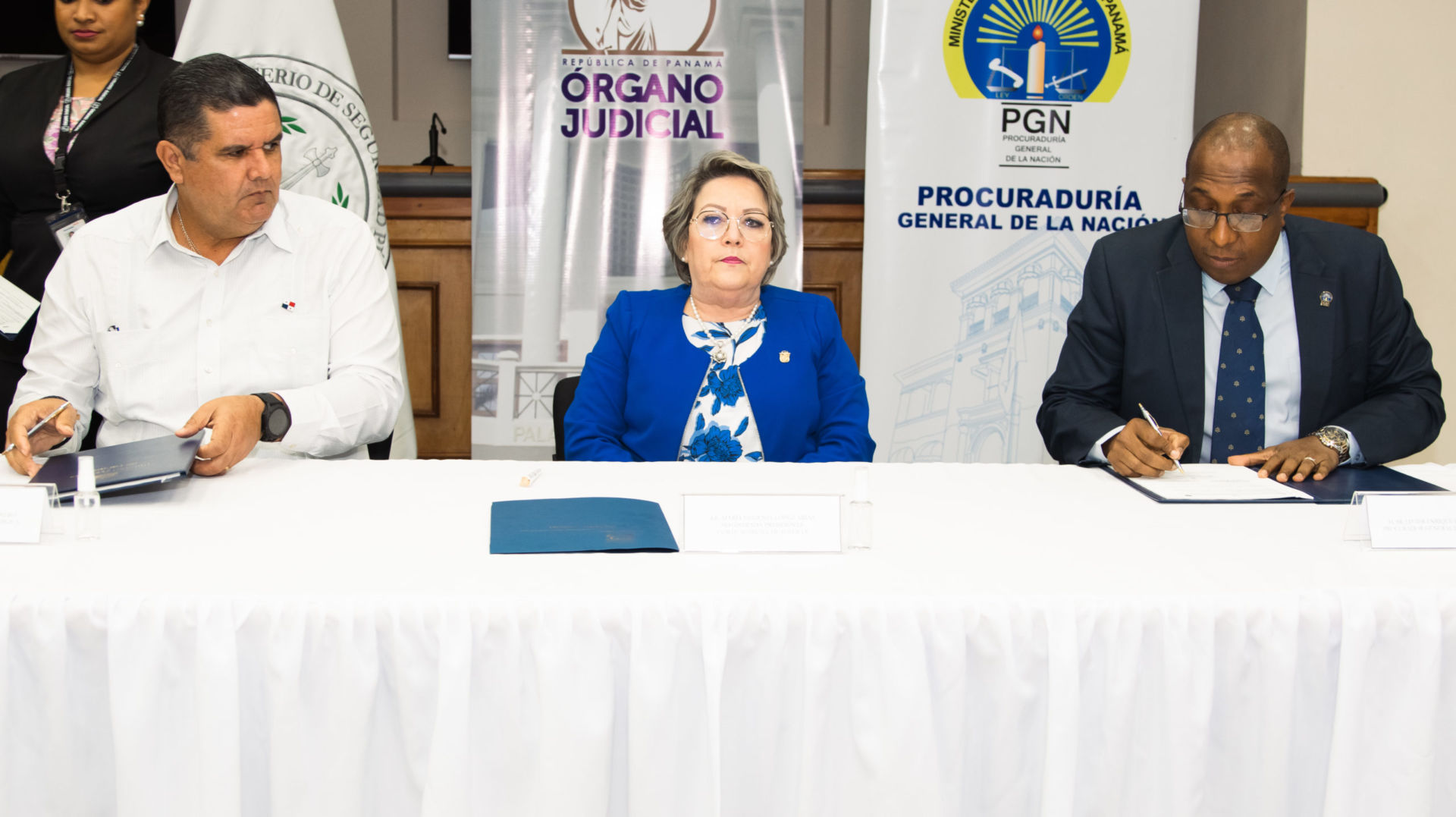 El Procurador General de la Nación, Javier Caraballo Salazar; la Magistrada Presidenta de la Corte Suprema de Justicia, María Eugenia López Arias; y el Ministro de Seguridad Pública, Juan Manuel Pino, suscribieron un convenio interinstitucional para el uso de las Tecnologías de la Información y Comunicación, a fin de tener acceso al Registro Único de Extranjería para validar y certificar la identidad de las personas extranjeras, que estén en etapa de investigación, proceso judicial o cumplimiento de condena.