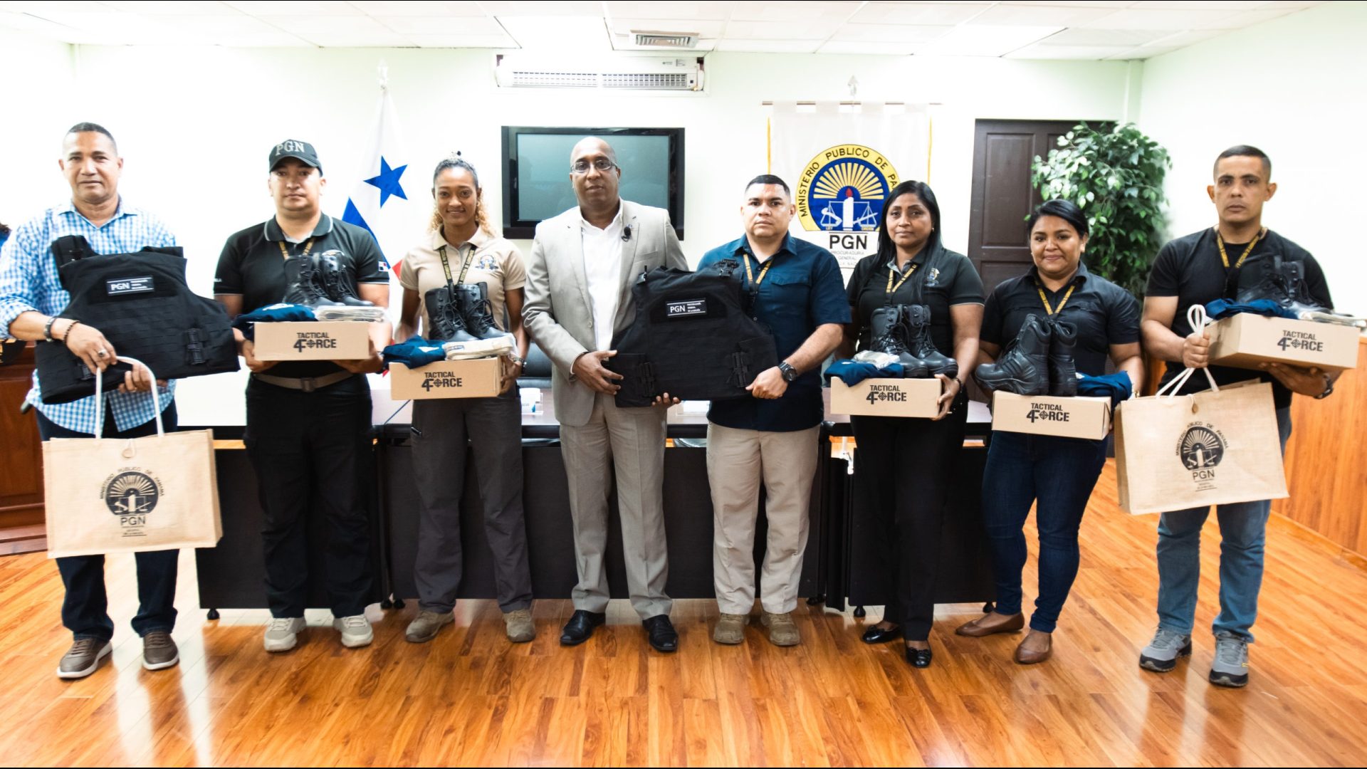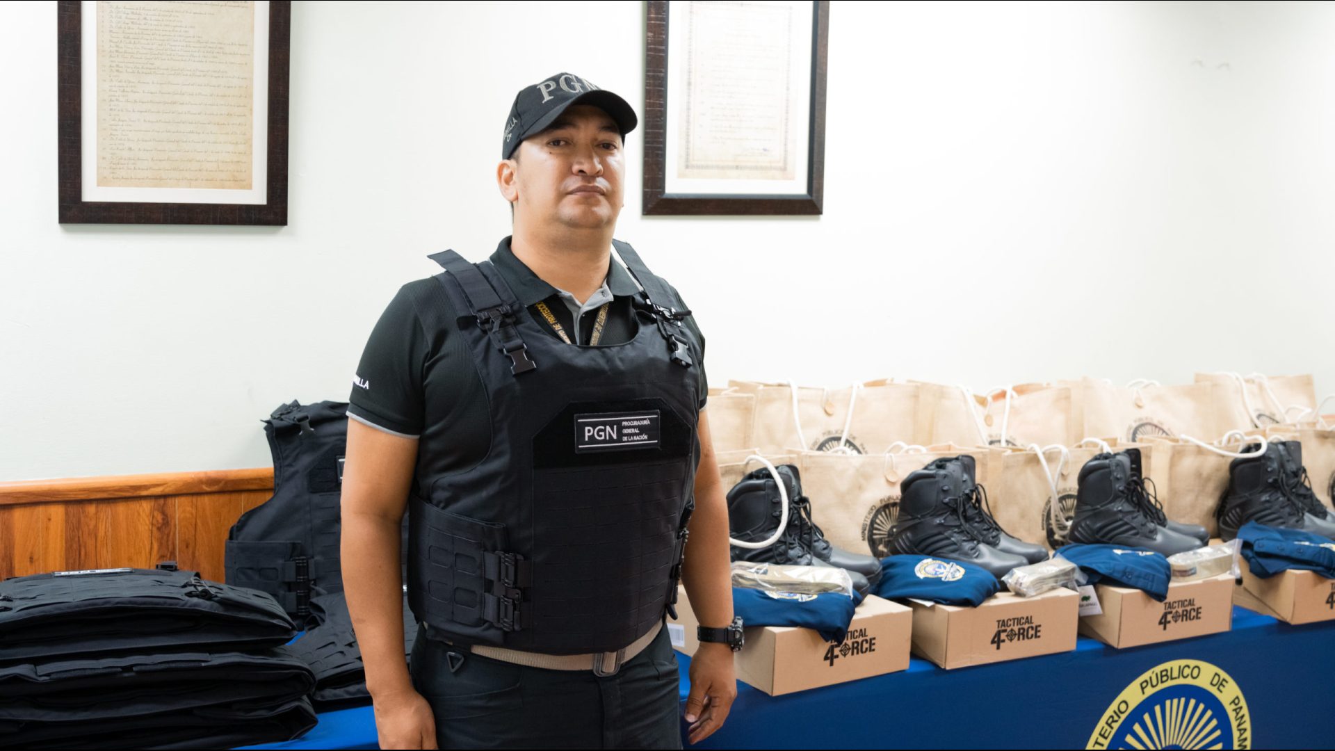 El Procurador General de la Nación, Javier Enrique Caraballo Salazar, realizó una entrega de implementos de seguridad como chalecos antibalas y uniformes, a colaboradores del Departamento de Protección y Fiscalías Especializadas, esto reiterando el compromiso de esta administración de brindarles a todos las mejores condiciones para que puedan ejercer su labor.