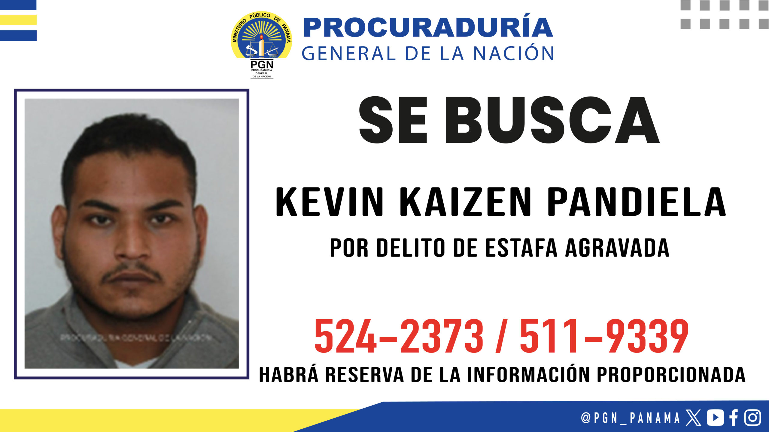 La Sección Tercera de Delitos contra el Patrimonio Económico de la Fiscalía Metropolitana, solicita la colaboración de la ciudadanía para ubicar al señor Kevin Kaizen Pandiela, el mismo está siendo requerido en múltiples investigaciones por la comisión del delito de estafa agravada.