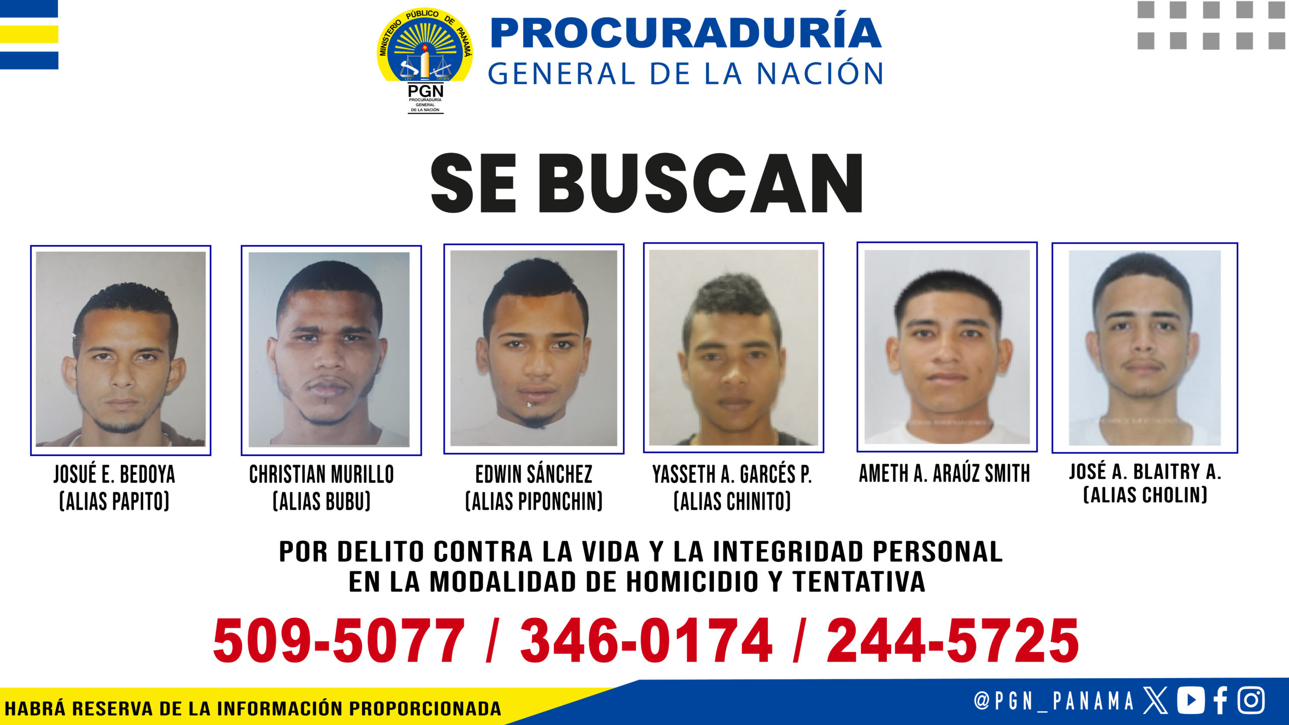 - Yasseth Arafat Garcés Perez alias “Chinito”, por el delito de homicidio doloso agravado, cometido el 10 de julio de 2024, en el sector el Realengo, corregimiento de Veracruz, distrito de Arraiján.