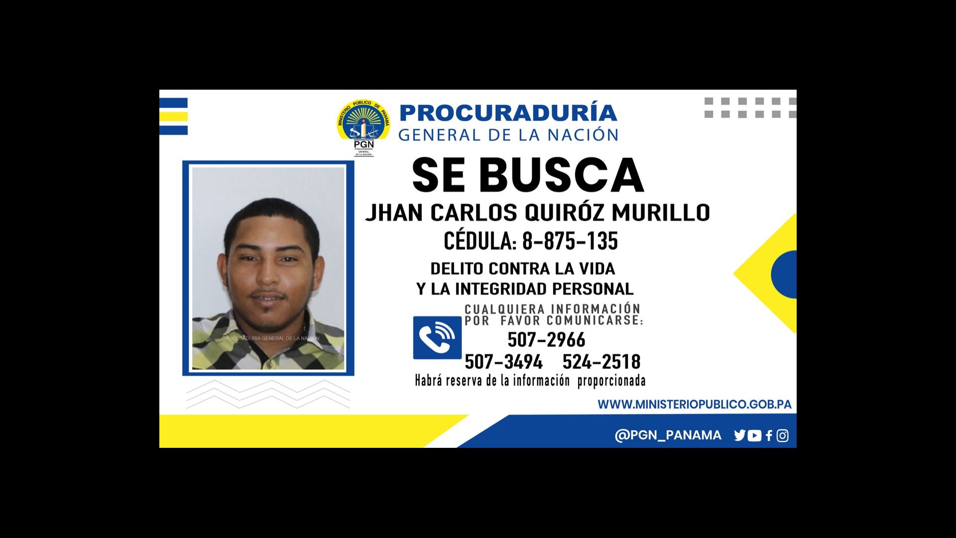 La Sección de Homicidio y Femicidio anuncia a la ciudadanía que se solicita su colaboración para dar con el paradero de los señores; Jhan Carlos Quiroz Murillo alias “Mello” cédula 8-875-135, Atdiel Yair Claros Merchant, alias “Peque”, con cédula 8-992-18, Jorge Enrique Claros Molina alias “Indio”, 8-939-2042, Ricardo Alejandro Cumberbach Torres alias “Kiko” cédula 8-933-1441, los cuales son requeridos con orden de aprehensión, dentro de la investigación que adelanta la Sección Especializada en Homicidio y Femicidio del Área Metropolitana, por la comisión de delito contra la vida y la integridad personal, en perjuicio de Israel Iván Duque, hecho ocurrido el 11 de septiembre de 2021, edifico Cannavagio, en San Miguel, corregimiento de Calidonia.