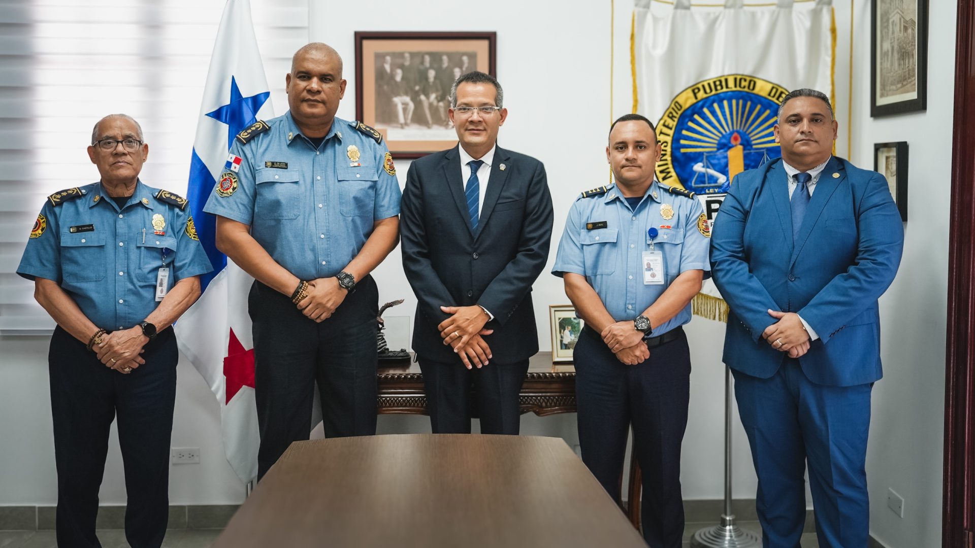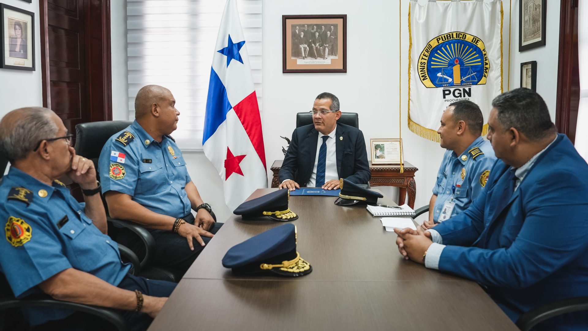 El Secretario General de la Procuraduría General de la Nación, José Antonio Candanedo Chiam, recibió este martes 14 de mayo de 2024, al Director General encargado del Benemérito Cuerpo de Bomberos de Panamá, Coronel Ernesto De León Echevers, quien estuvo acompañado por el Coronel Omar Castillo, el Mayor Domingo Urriola y el Capitán Julio Real Santander, con la finalidad de coordinar acciones interinstitucionales, y en ese sentido fortalecer la articulación de mecanismos de colaboración para mejorar los servicios que cada una de las instituciones ofrecen.