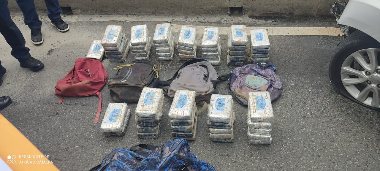 65.84 kilos; luego de haber sido perseguida y su vehículo fuera impactado con proyectil de arma de fuego, provocando que perdiera el control y chocara contra los “jerseys”.