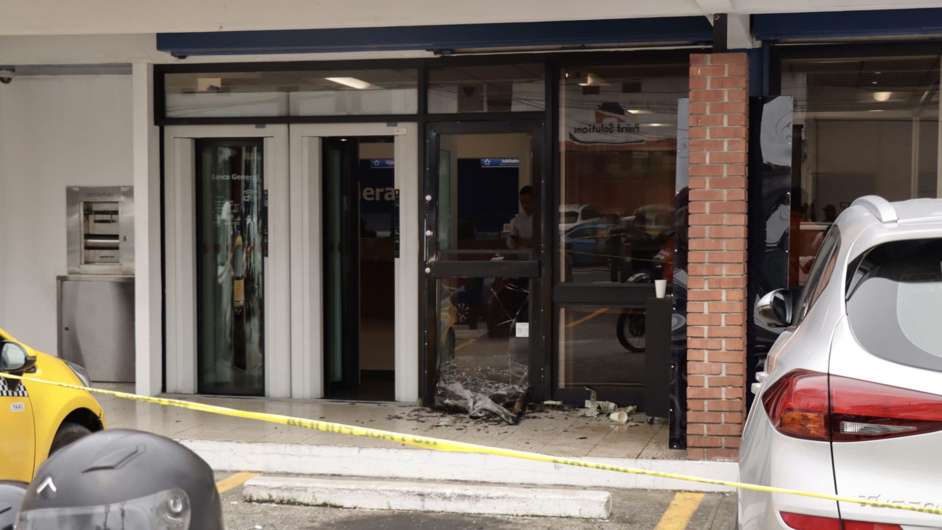 Mientras que otros dos, con arma de fuego y con un martillo cada uno, sometieron al agente de seguridad que se encontraba en la puerta principal, tirándolo al piso y lo despojándolo del arma de fuego. Con el martillo rompieron la puerta principal, logrando salir los sujetos que habían ingresado al banco, para darse a la huida y en la salida dejaron caer dinero en efectivo por la suma de B/.6,539.00, abordando el vehículo taxi que los esperaba en los estacionamientos de la entidad bancaria siendo conducido por Rolando Abdiel Quintero, quien fue contactado por Xavier Rine Guerra, para que participara del robo brindando colaboración en el traslado de los asaltantes.