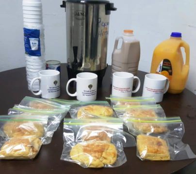 Café, jugo de naranja, chocolate y empanada, formaron parte de los alimentos compartidos.