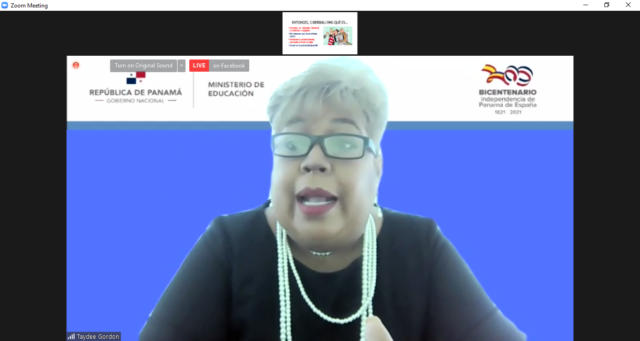 Mitzel De Gracia, psicóloga del SENNIAF, fue la moderadora del evento académico y como facilitadores participaron por el Meduca, la profesora Taydée Gordón, con el tema “Peligros del Ciberbullying, sus efectos y prevención”; tomando en consideración que el internet no es seguro, y que existe muchos efectos colaterales, por lo cual los padres deben estar alertas de sus hijos.