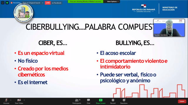 Mitzel De Gracia, psicóloga del SENNIAF, fue la moderadora del evento académico y como facilitadores participaron por el Meduca, la profesora Taydée Gordón, con el tema “Peligros del Ciberbullying, sus efectos y prevención”; tomando en consideración que el internet no es seguro, y que existe muchos efectos colaterales, por lo cual los padres deben estar alertas de sus hijos.