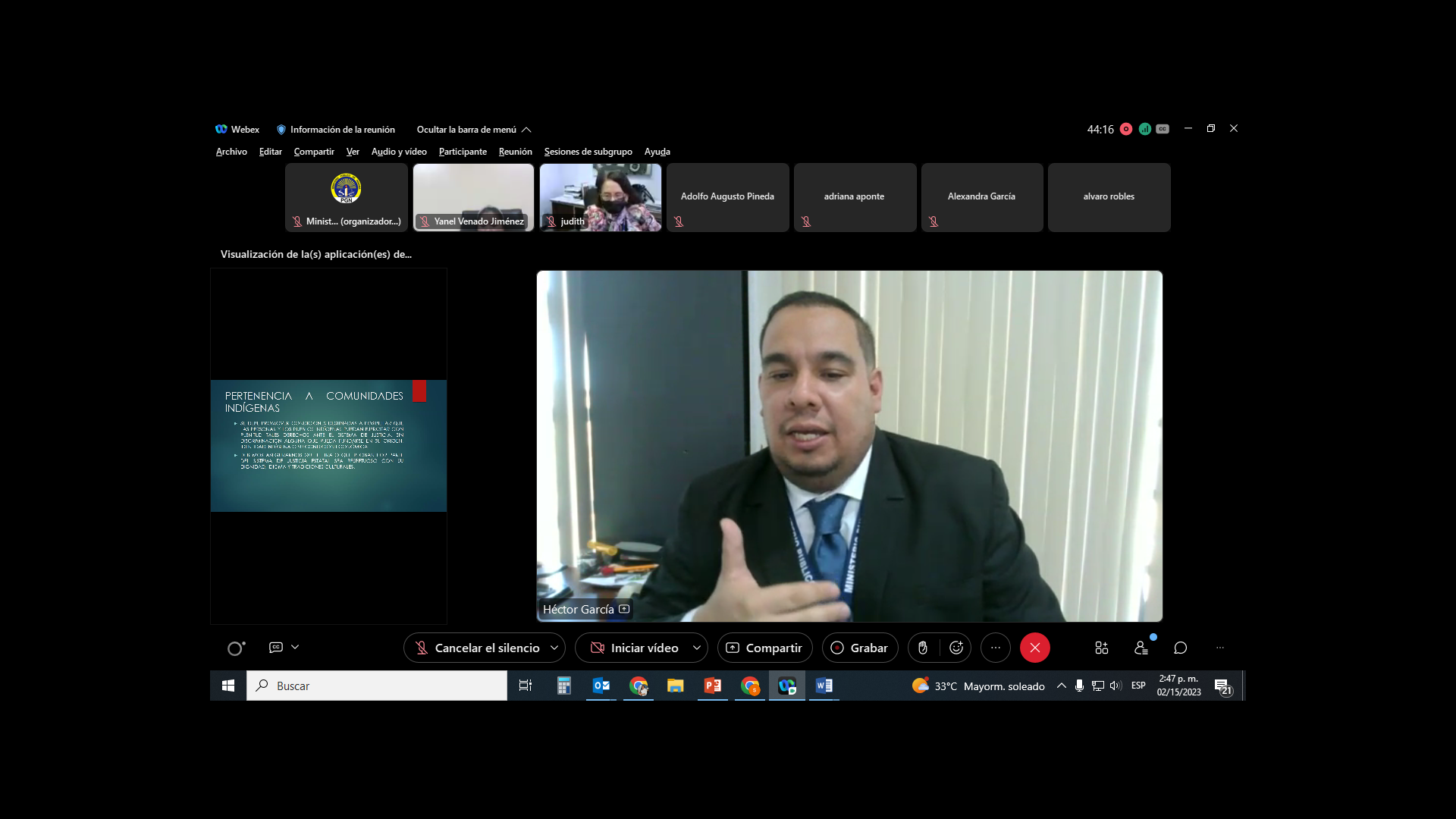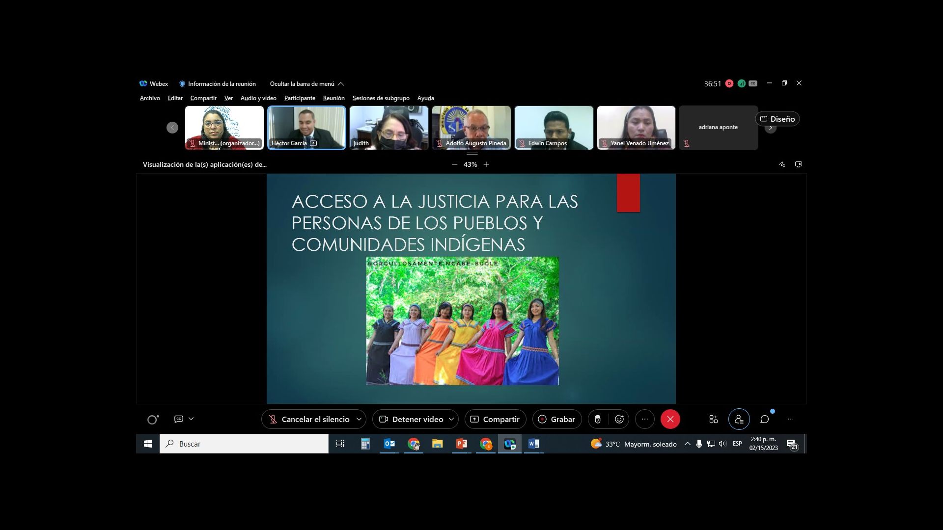 En su exposición el Fiscal de Circuito Héctor García de la Fiscalía Superior de Asuntos Indígenas de las Comarcas Ngöbe Buglë y Naso Tjër Di, compartió con los participantes sus conocimientos y experiencias en el debido proceso de acceso a la justicia de los pueblos indígenas de Panamá, e igualmente expuso los temas de la discriminación y revictimización, puntualizando en el acceso a la justicia con las comunidades indígenas, las causas de vulnerabilidad establecidas en el Código Penal.